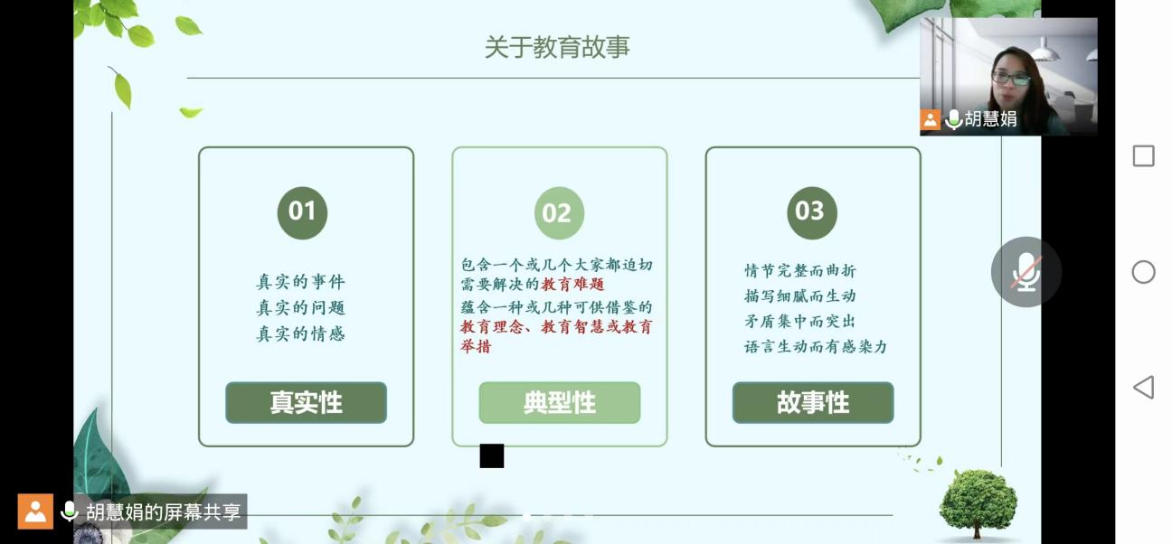 接着,胡慧娟老师从教育故事的真实性、典型性和故事性的角度分析了教育故事区别于其他文体的特征,并截取了故事集中有代表性的篇目文段进行详细分析,深入浅出地阐明了教育故事集中存在的普遍问题以及亟待解决的突出问题。