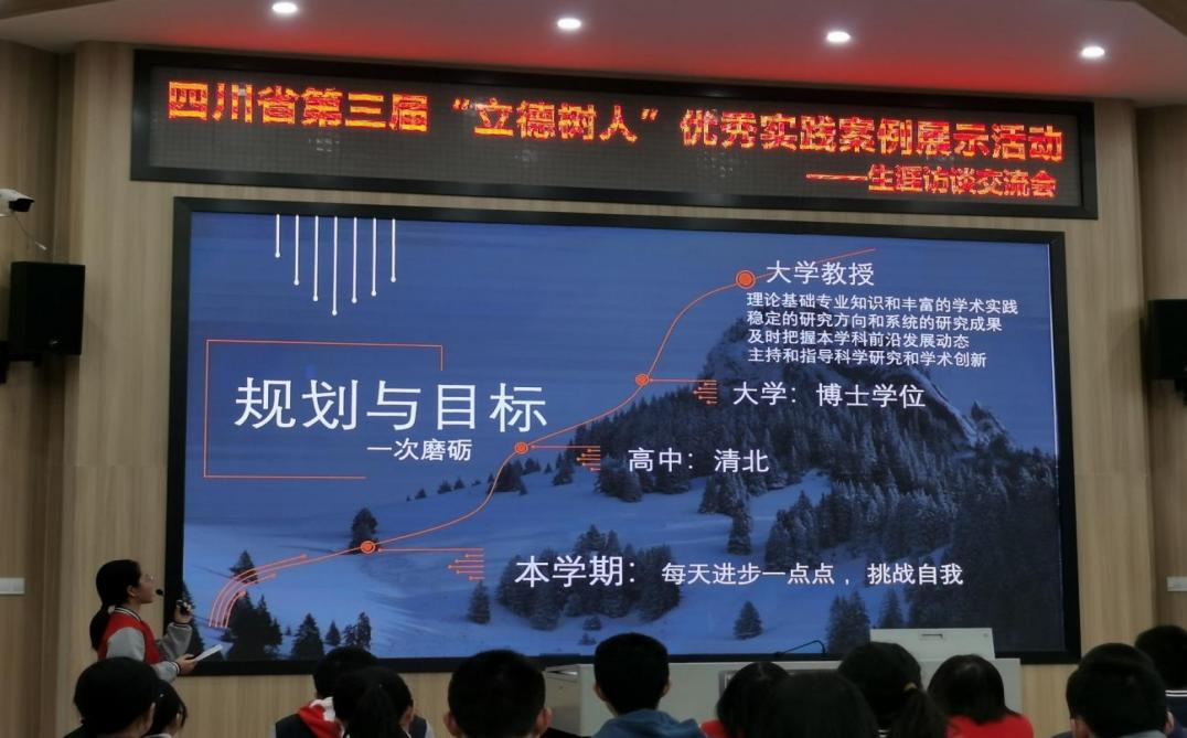 泸县建校的李秋梅老师感叹,古人云:感人心者莫先乎情。王燕老师设计实施的“预见,是为了更好的遇见”学生职业生涯规划汇报,没有刻意的说教,通过学生展示和演绎,引入身边的人和事,引发学生的感悟,达到情感上的共鸣。最后以米歇尔的“Becoming”的经典语句作总结,让学生意识到要为职业理想去努力的真谛,升华了主题,达到“随风潜入夜,润物细无声”的效果。