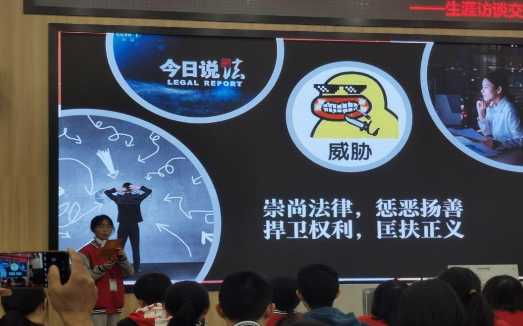 在生涯规划汇报中,泸县二中高2020级弘毅40班的学生为我们展现了一堂高质量高规格的生涯规划汇报,三名学生怀揣律师、哲学家和大学教授的职业梦想,从“追问与思考”“个人目标设定”“生涯人物访谈”“知己知彼”等多个方面展示生涯规划。通过对职业现状的了解,他们坚定了人生的目标,找到努力的动力。