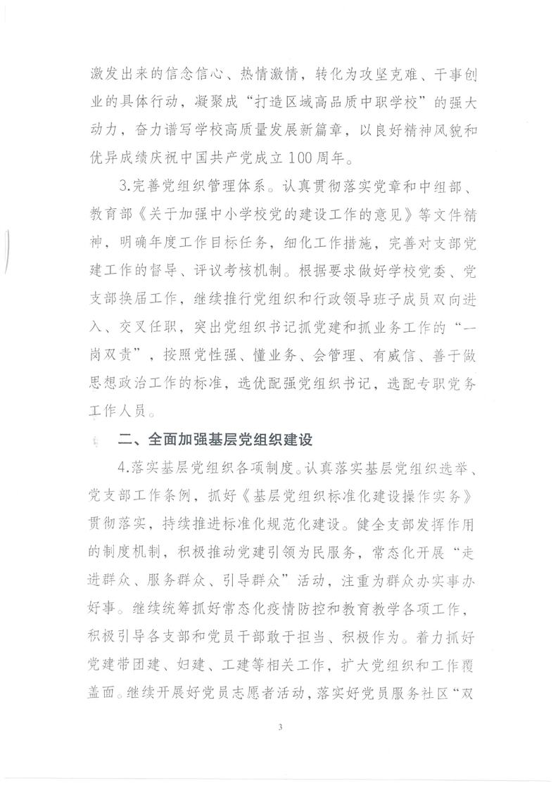 中共泸州市职业技术学校委员会2021年党建工作要点