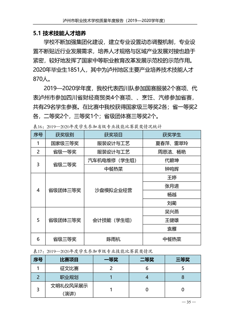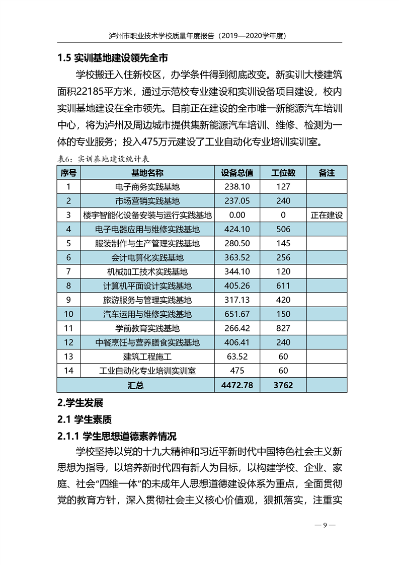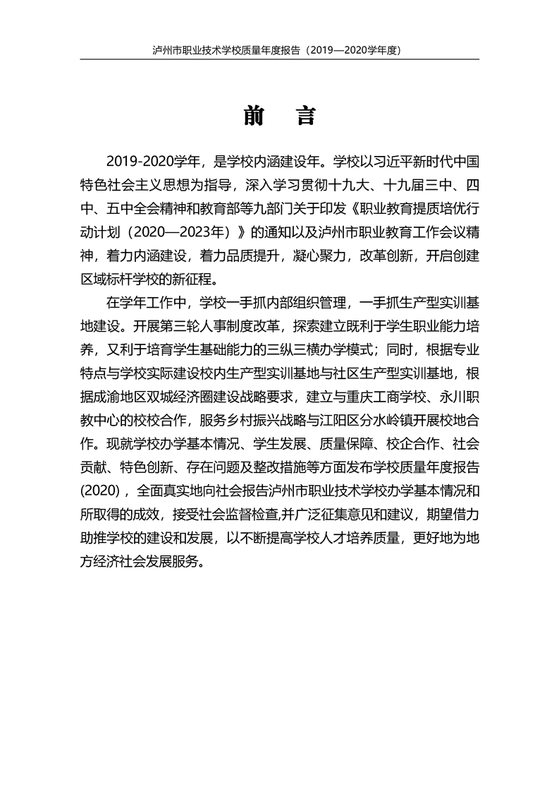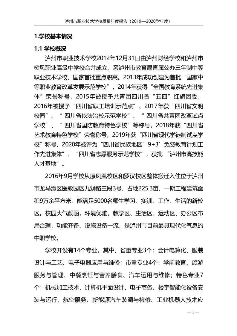 泸州市职业技术学校2020年度质量报告