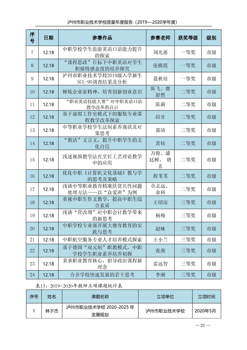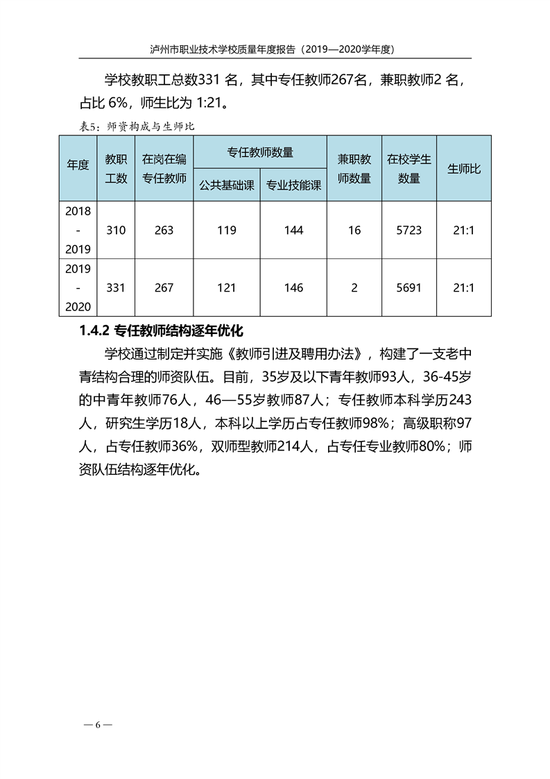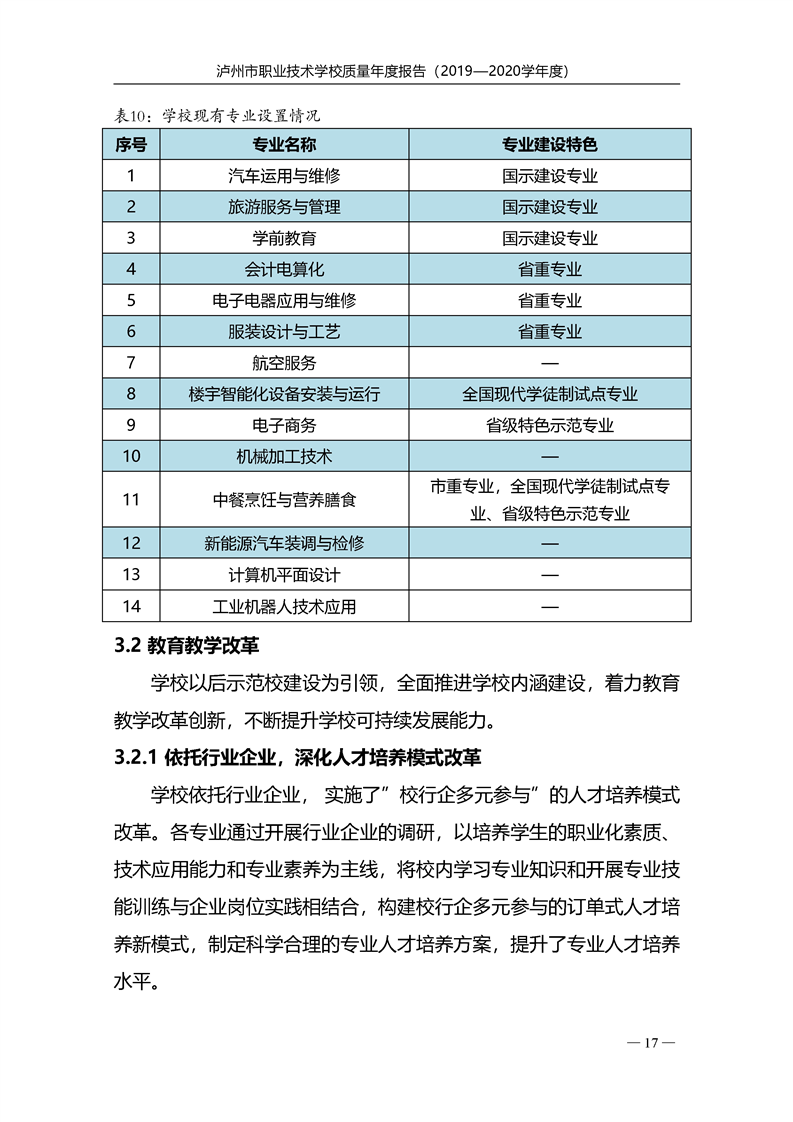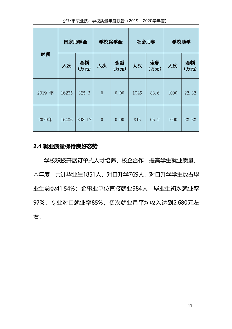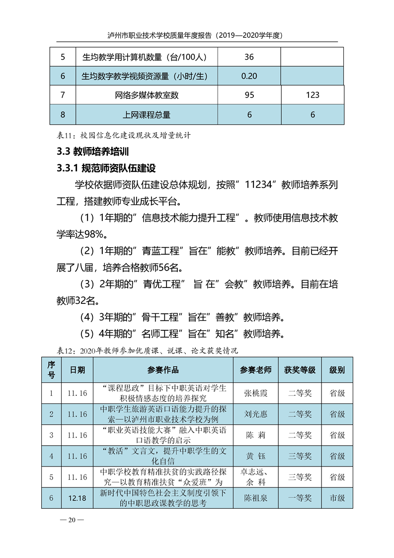泸州市职业技术学校2020年度质量报告