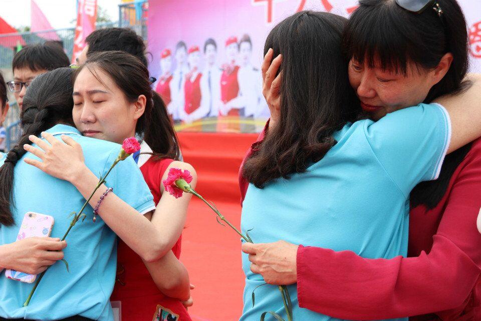 在仪式中,16级旅游班曾永星老师作为班主任代表回顾了两年与同学们朝夕相处的日子,同时送上老师们对顶岗实习学生们的美好祝福。16级各班学生代表走上舞台,虔诚地为老师献上鲜花,并与老师深情相拥惜别。就在那一瞬间,台上台下师生潸然泪下,学生们的款款感恩之心、踌躇满志的抱负,青春飞扬的身影成为了校园最美的印记。掀起了典礼的高潮。