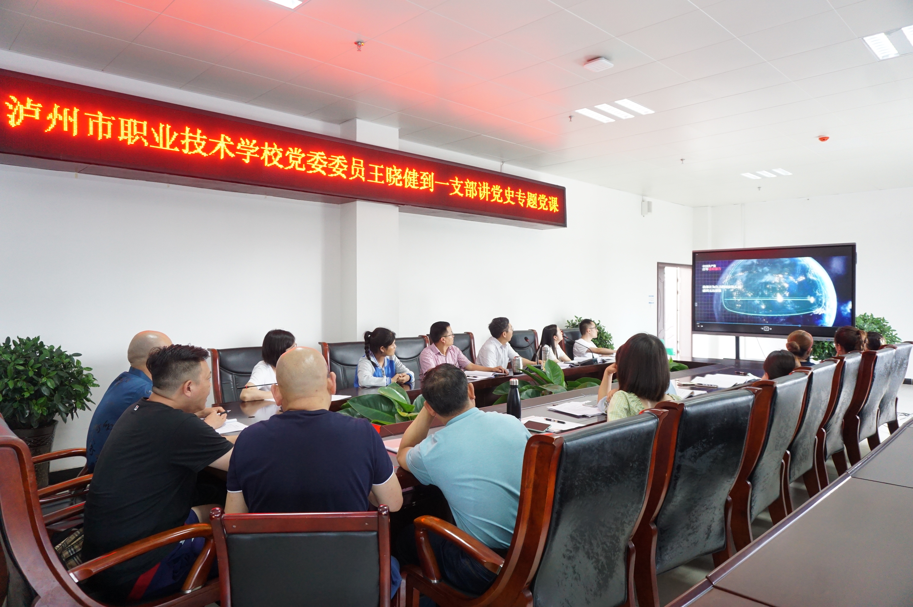 党委委员、副校长陈飞为第二党支部党员同志作题为“学党史、颂党恩、跟党走”的专题党课。陈飞从六个环节综述了党的发展历程——“星火燎原,中国社会换新颜”、“缔造新中国,我党居功至伟”、“改革开放、引领中华民族奔向富强”、“吃水不忘挖井人,幸福感恩共产党”、“爱我家乡,泸州人的奋斗和靓丽名片”、“科教兴国,少年强则中国强”。