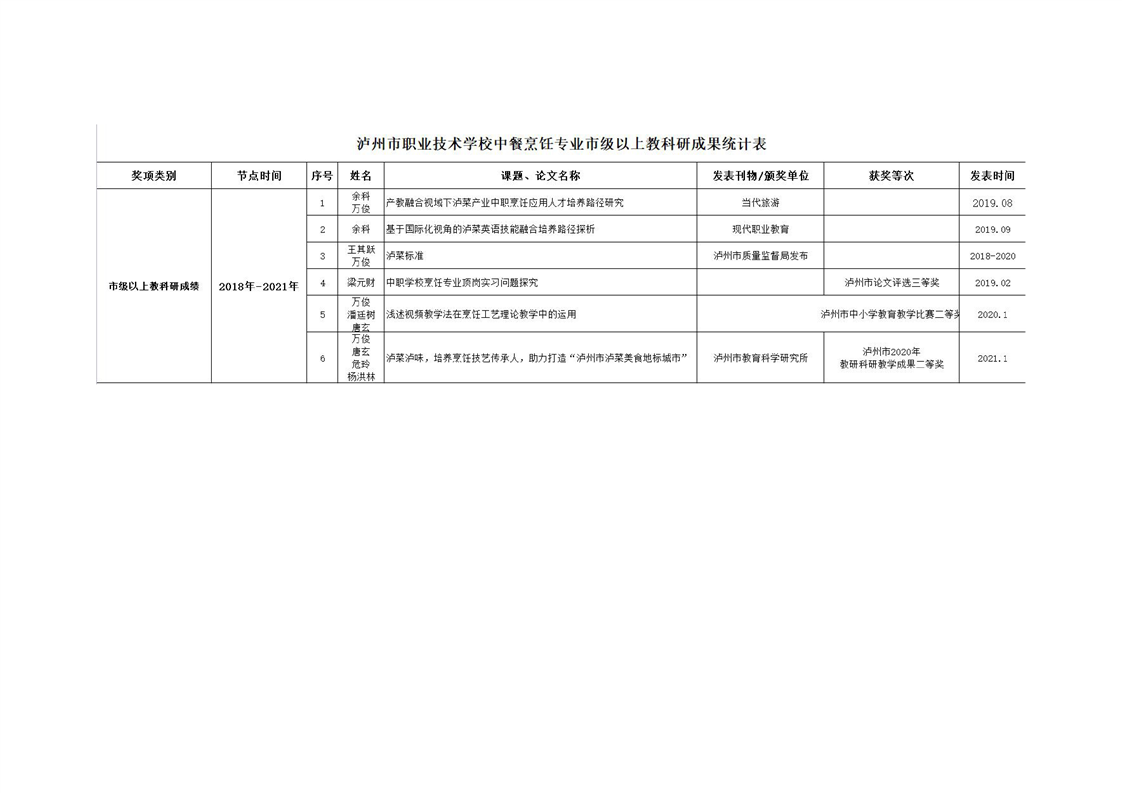 当前页面:中餐烹饪终期验收 >> 总结报告 >> 5.直接成果 >> 5.4.专业教师、科研成果