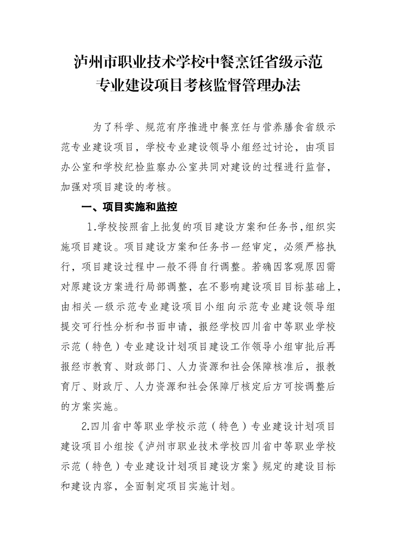 当前页面:中餐烹饪终期验收 >> 专业建设任务 >> 1.1项目建设总体情况 >> 1.1.1工作机制与举措 >> 1.1.1.3规范管理考核监督
