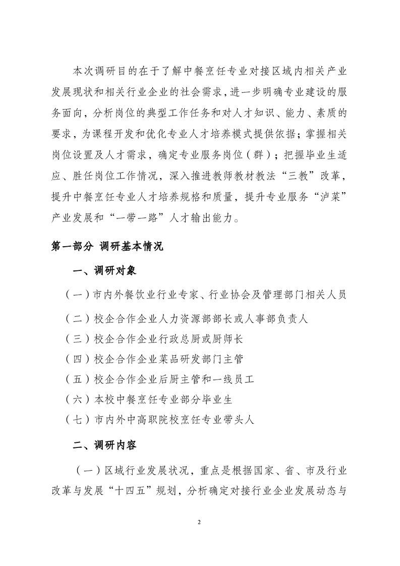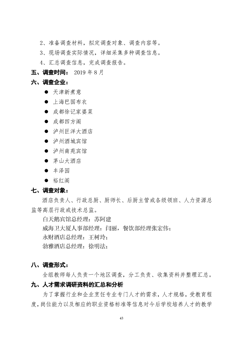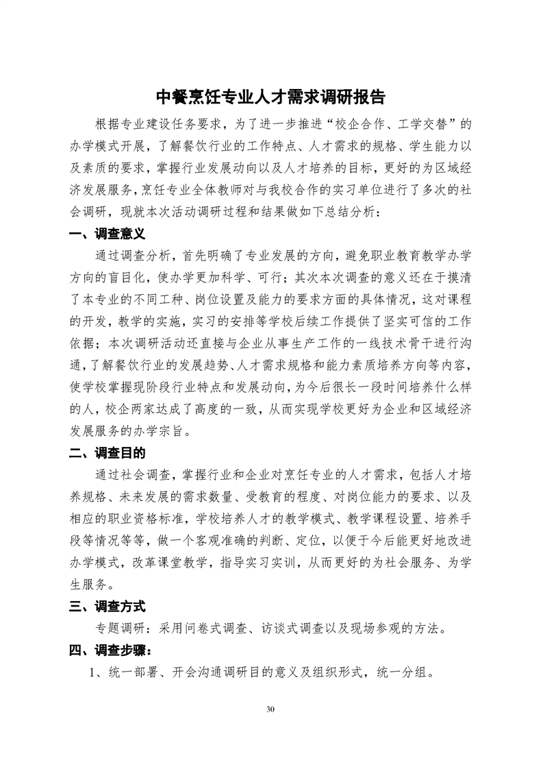 当前页面:中餐烹饪终期验收 >> 专业建设任务 >> 1.2创新人才培养模式 >> 1.2.1专业动态调整机制建设 >> 1.2.1.1专业调研