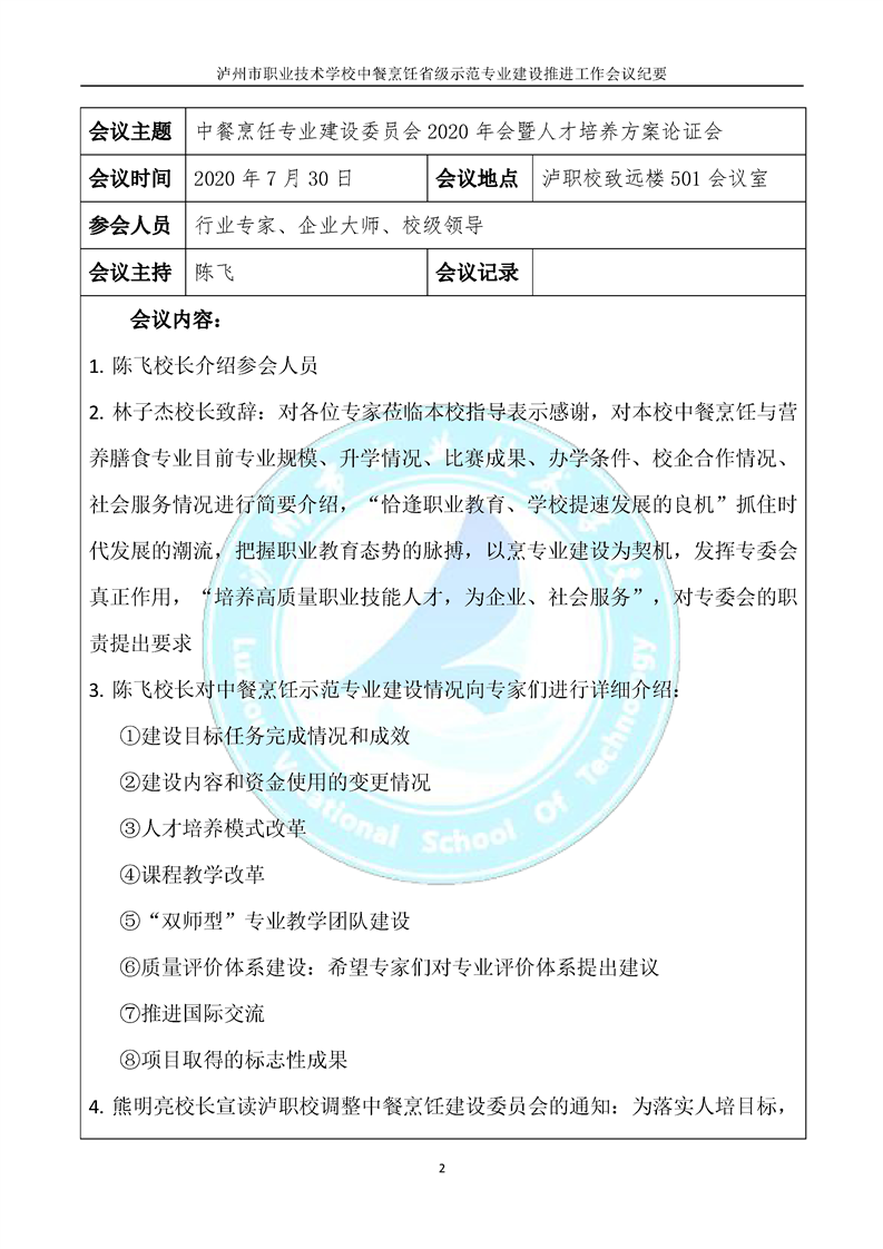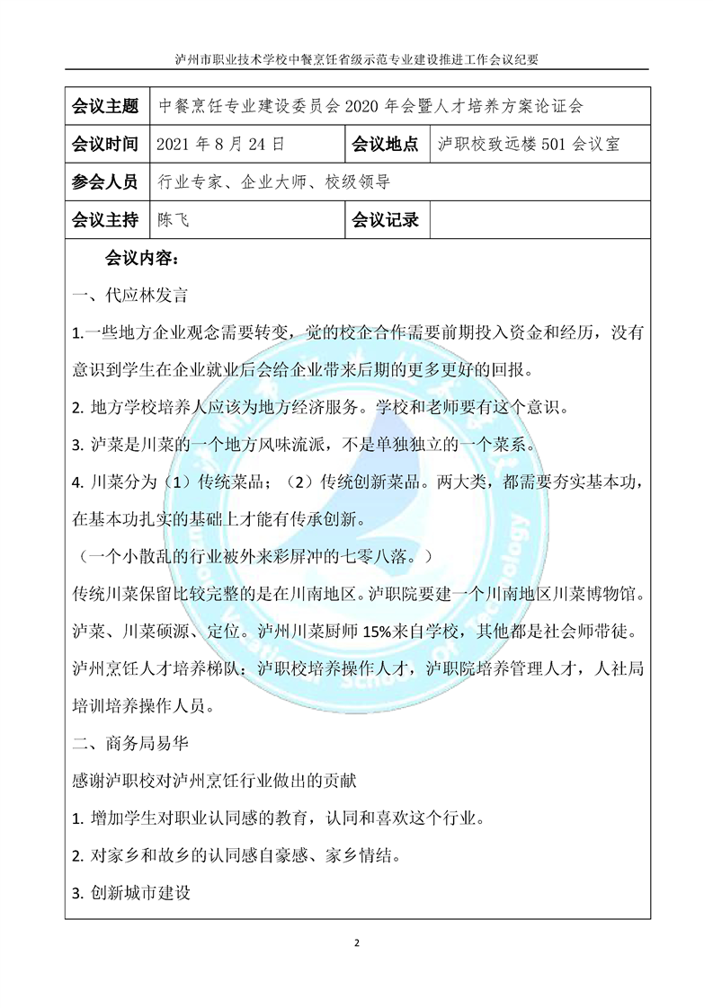 当前页面:中餐烹饪终期验收 >> 专业建设任务 >> 1.2创新人才培养模式 >> 1.2.1专业动态调整机制建设 >> 1.2.1.2专业建设指导委员会