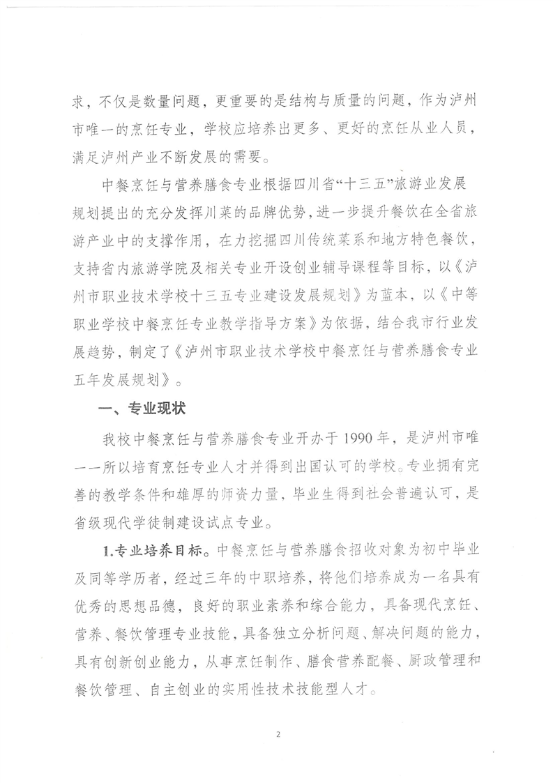 当前页面:中餐烹饪终期验收 >> 专业建设任务 >> 1.2创新人才培养模式 >> 1.2.1专业动态调整机制建设 >> 1.2.1.3三年发展规划