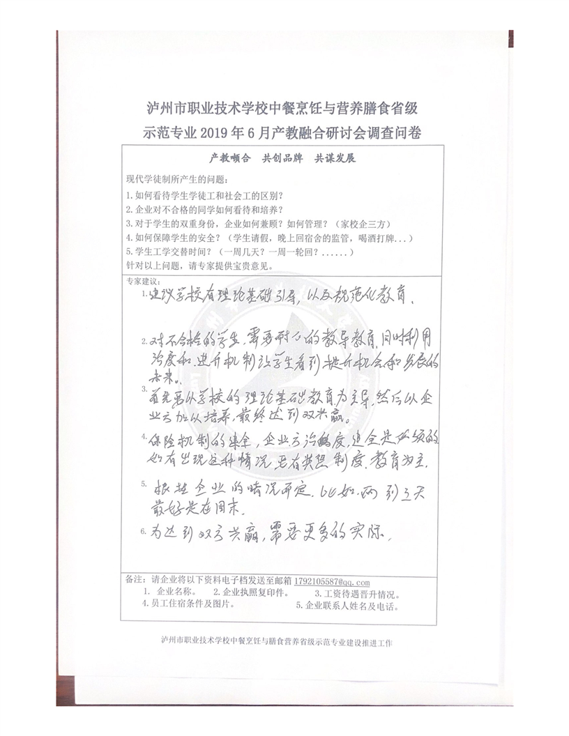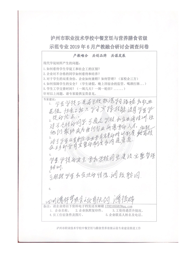 当前页面:中餐烹饪终期验收 >> 专业建设任务 >> 1.2创新人才培养模式 >> 1.2.2深化校企合作协同育人模式改革 >> 1.2.2.1产教融合