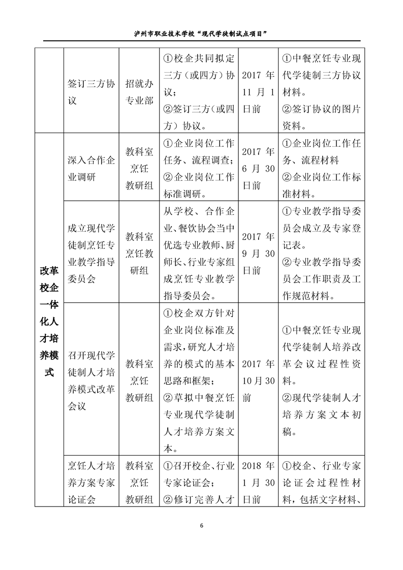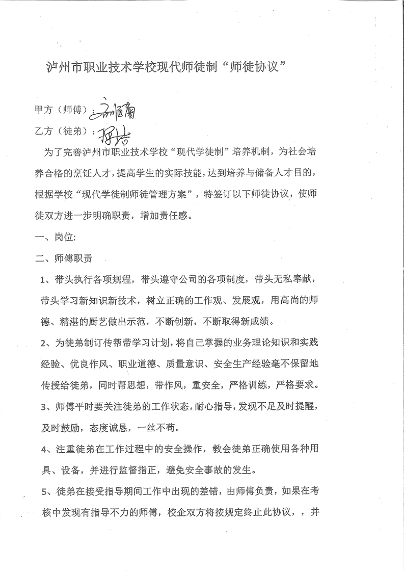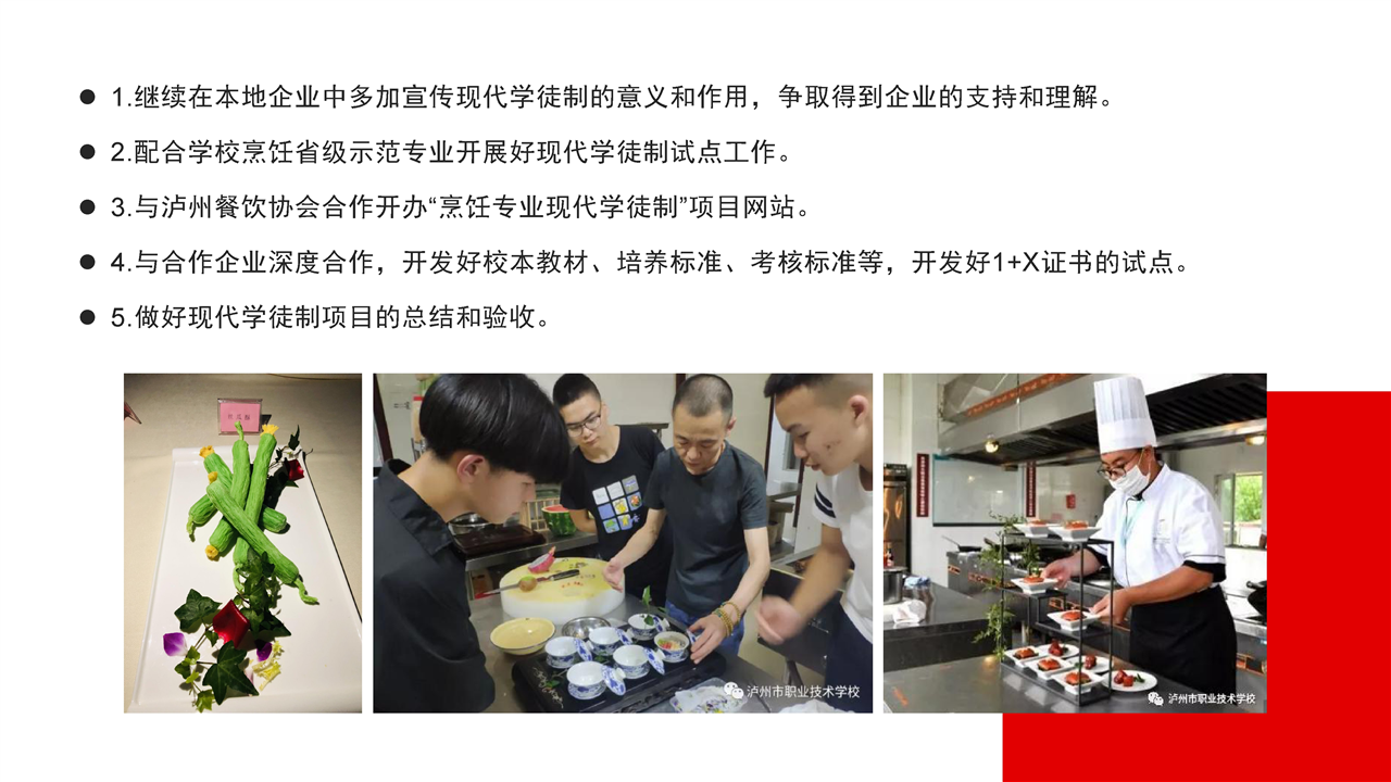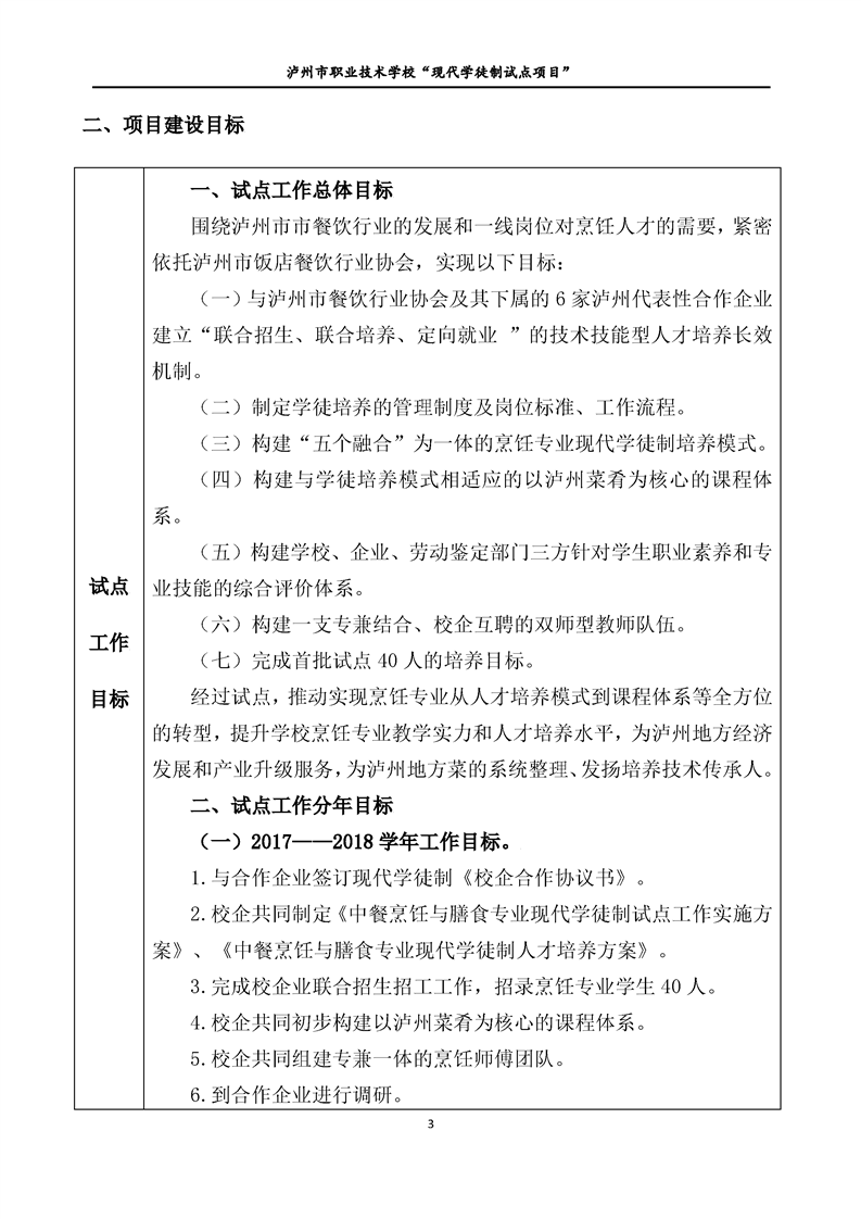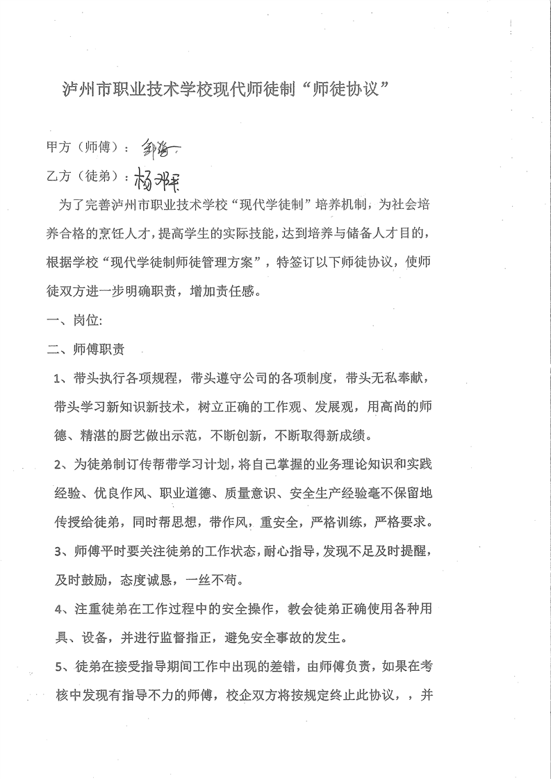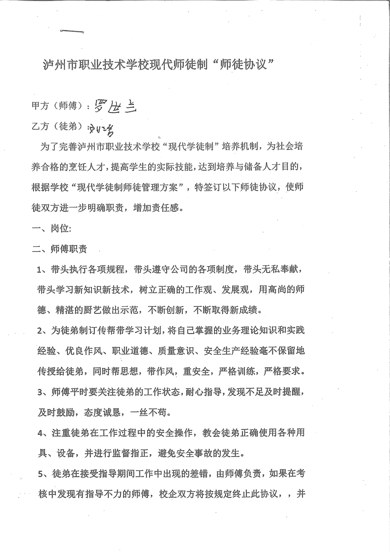 当前页面:中餐烹饪终期验收 >> 专业建设任务 >> 1.2创新人才培养模式 >> 1.2.2深化校企合作协同育人模式改革 >> 1.2.2.3现代学徒制