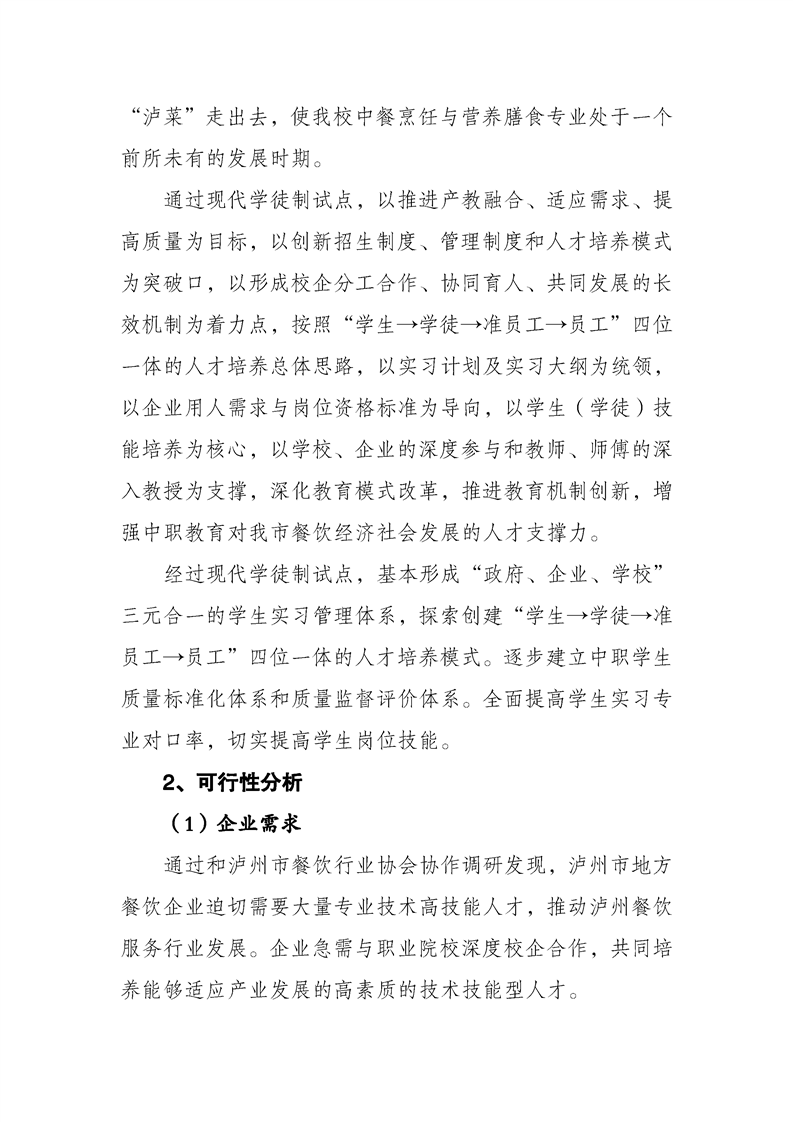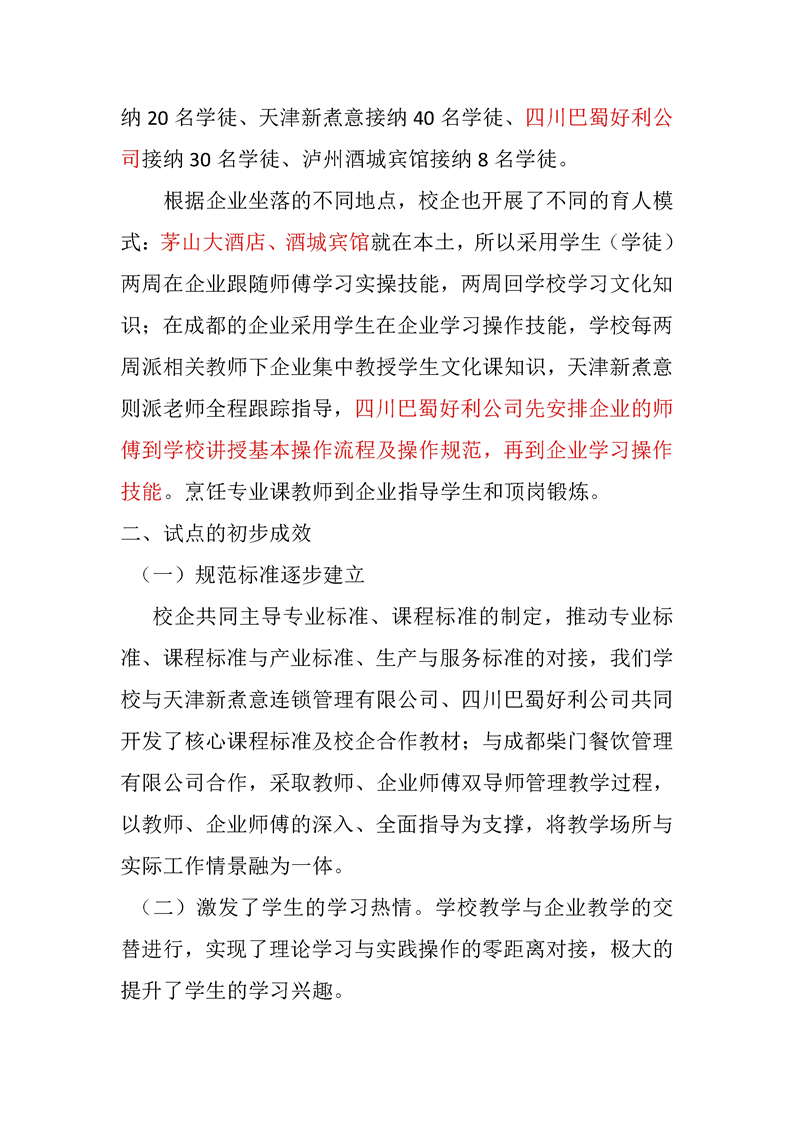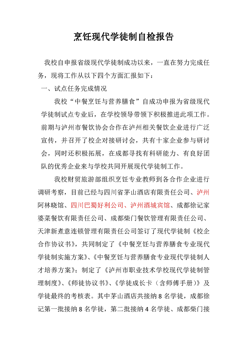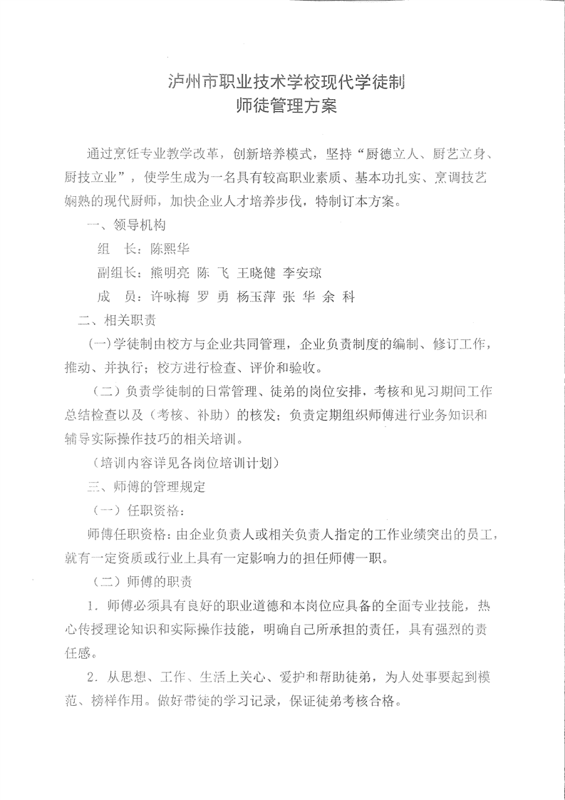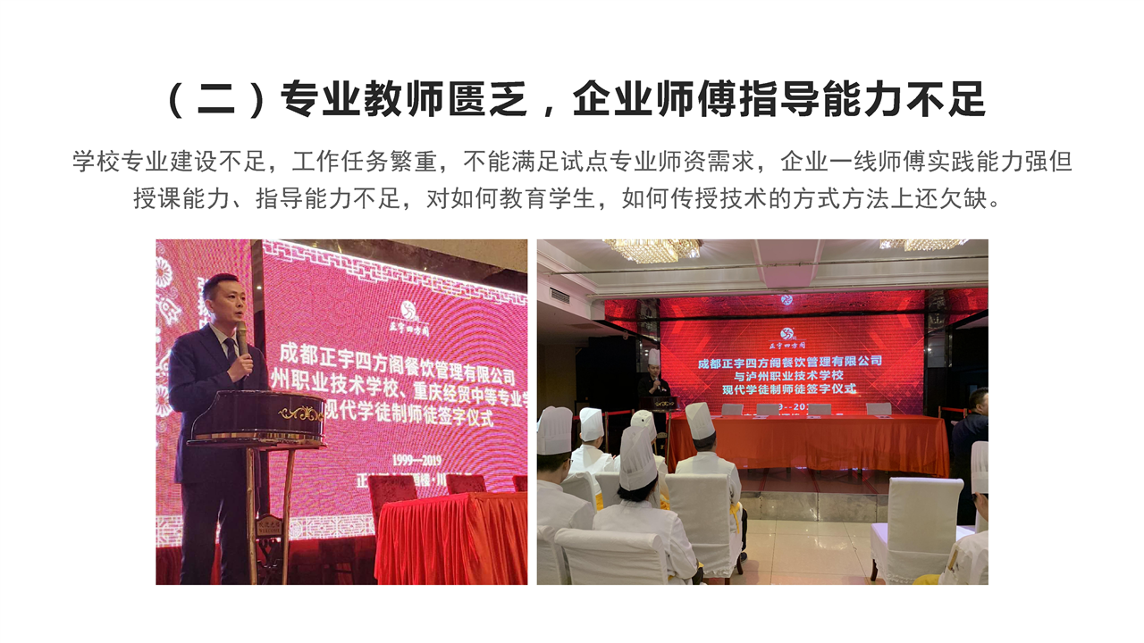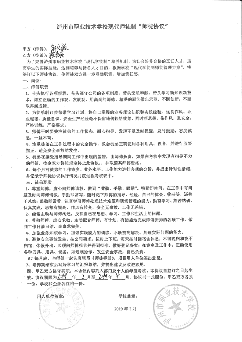 当前页面:中餐烹饪终期验收 >> 专业建设任务 >> 1.2创新人才培养模式 >> 1.2.2深化校企合作协同育人模式改革 >> 1.2.2.3现代学徒制