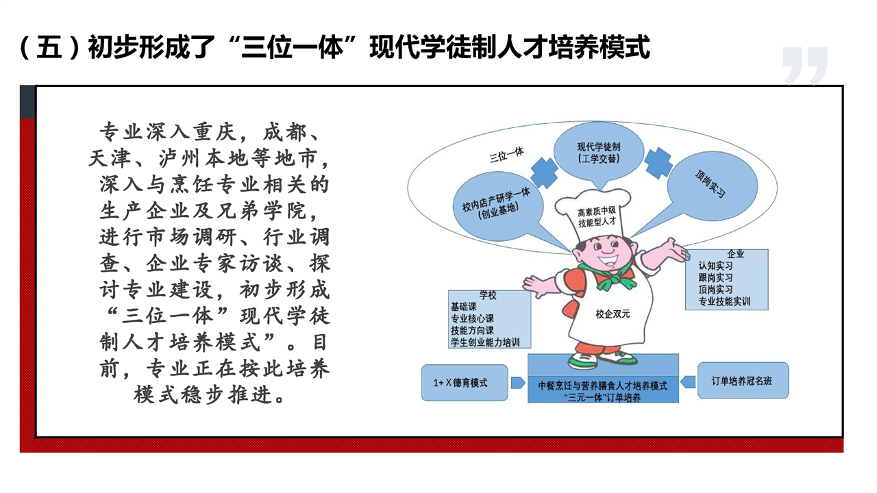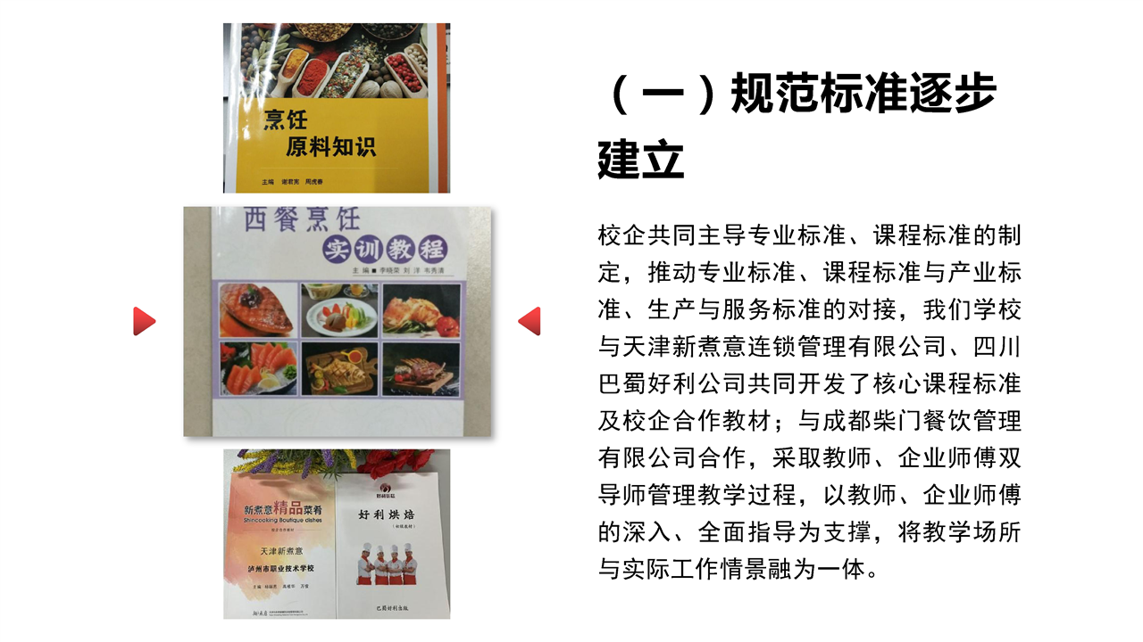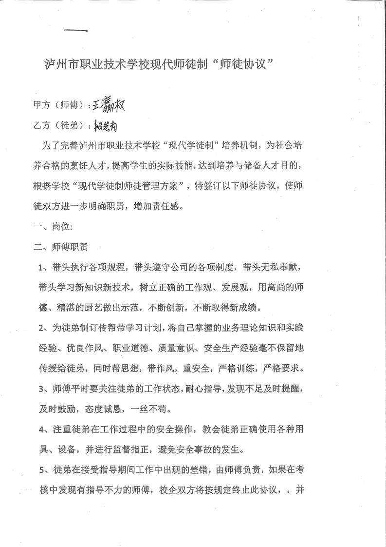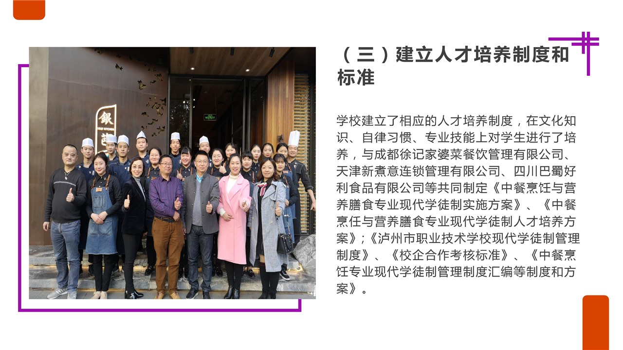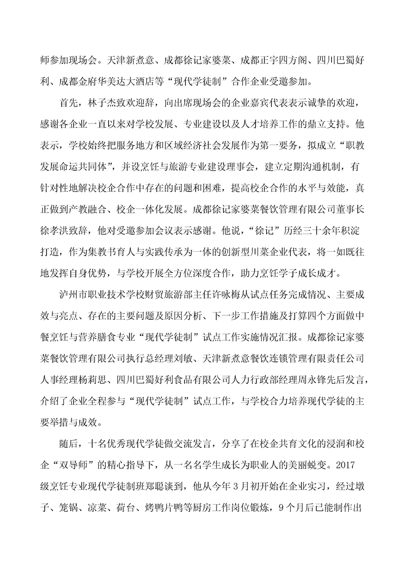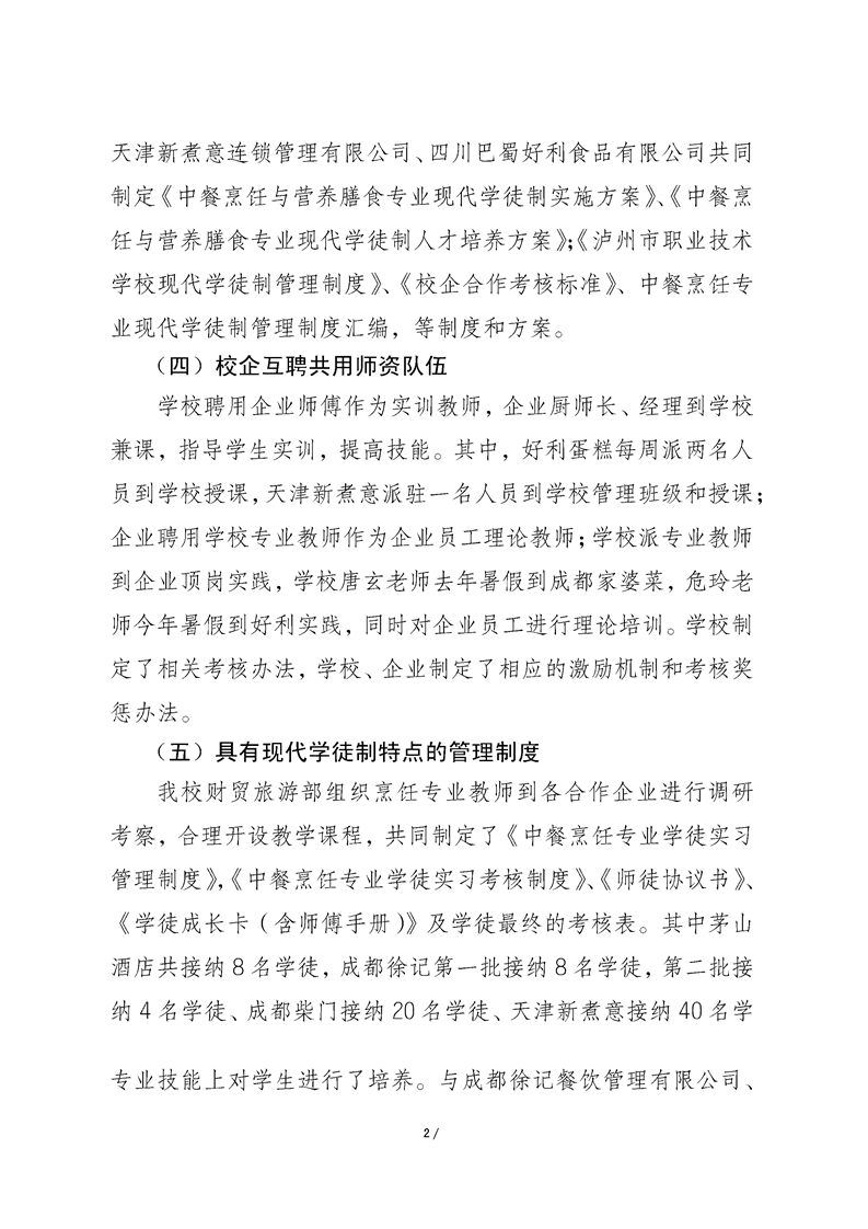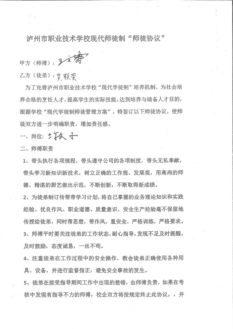 当前页面:中餐烹饪终期验收 >> 专业建设任务 >> 1.2创新人才培养模式 >> 1.2.2深化校企合作协同育人模式改革 >> 1.2.2.3现代学徒制