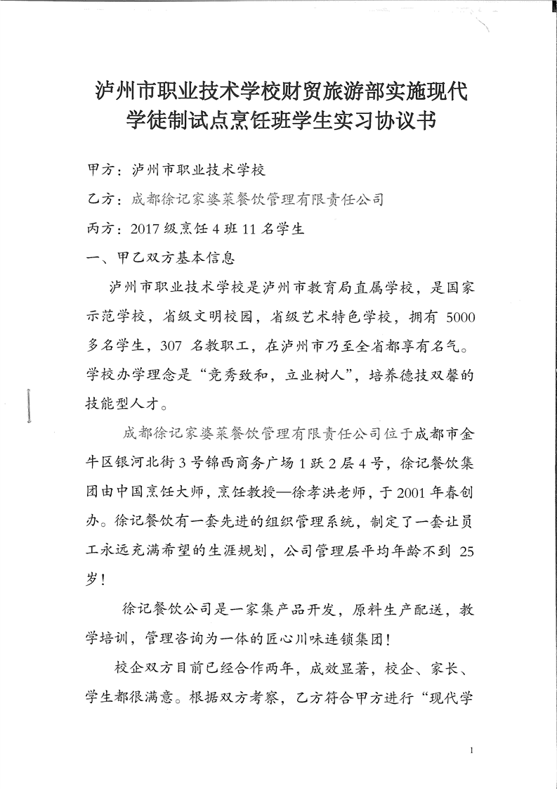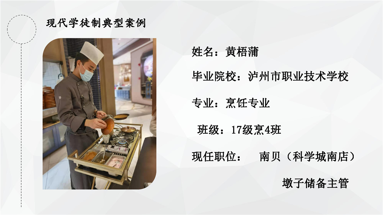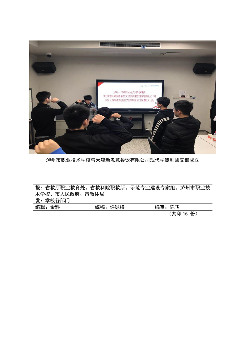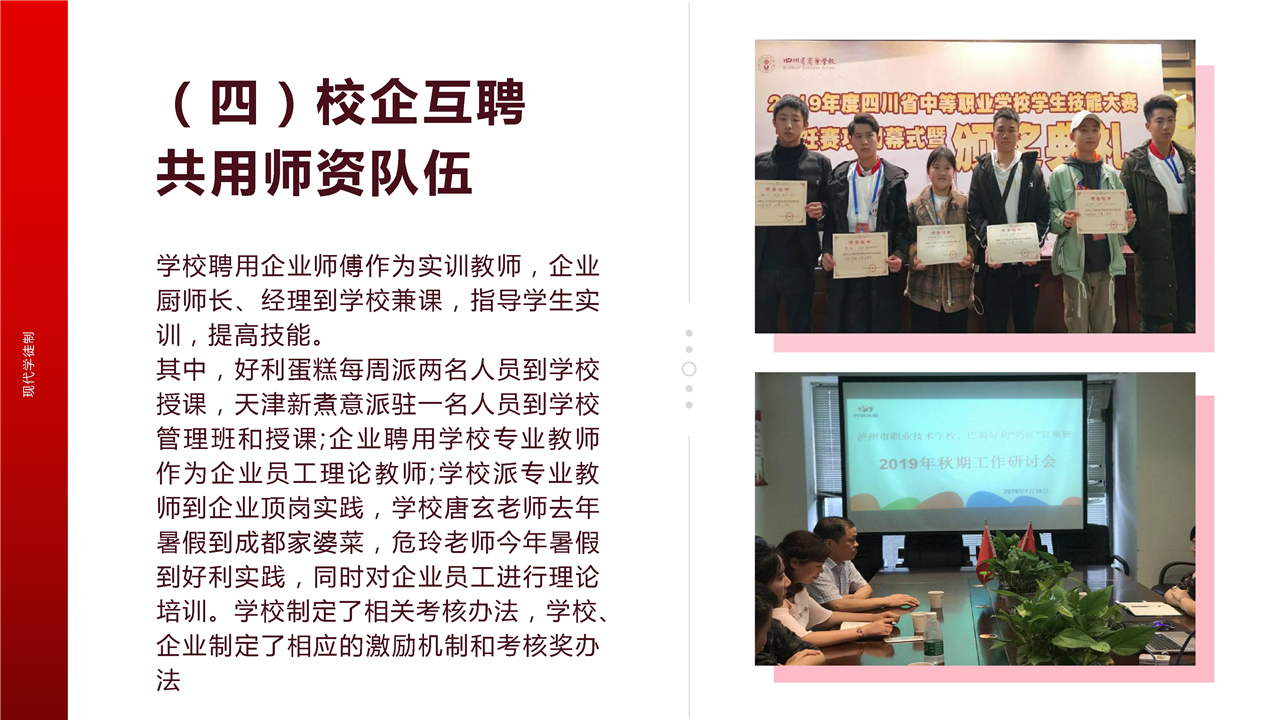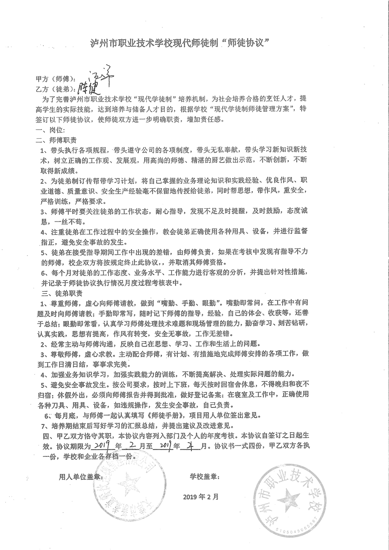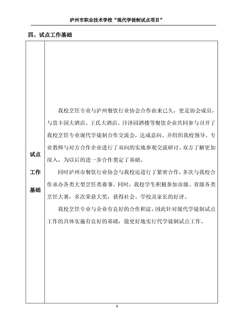 当前页面:中餐烹饪终期验收 >> 专业建设任务 >> 1.2创新人才培养模式 >> 1.2.2深化校企合作协同育人模式改革 >> 1.2.2.3现代学徒制