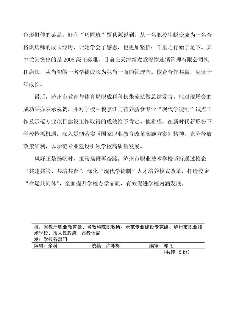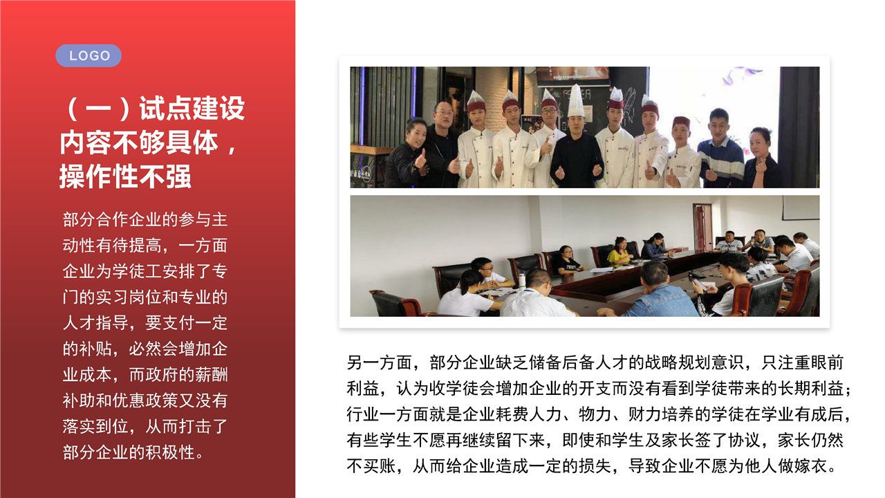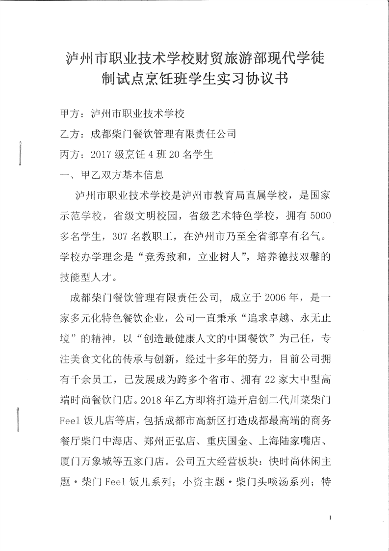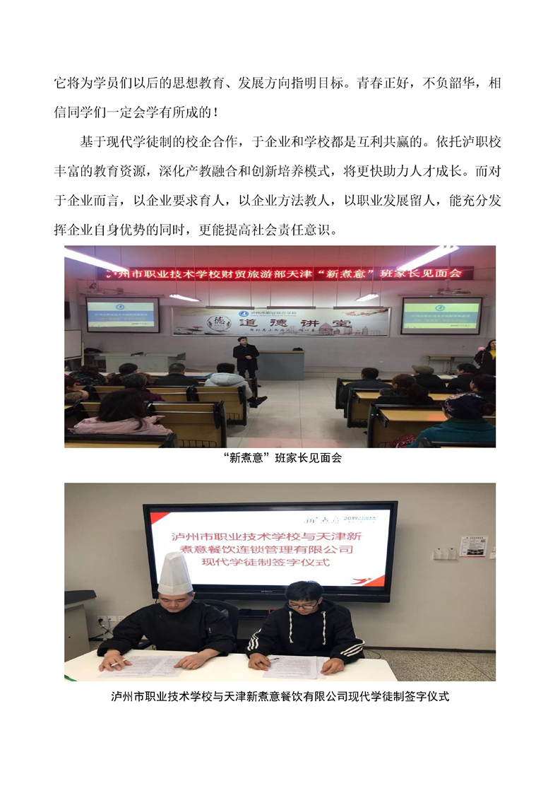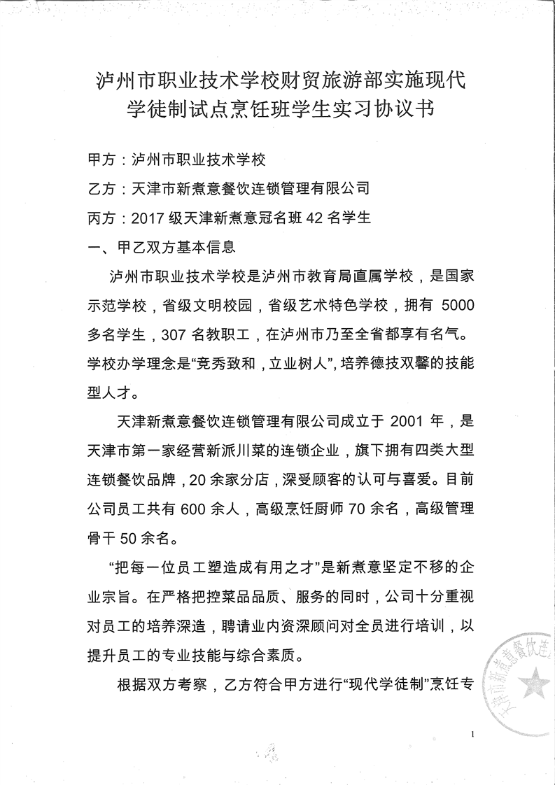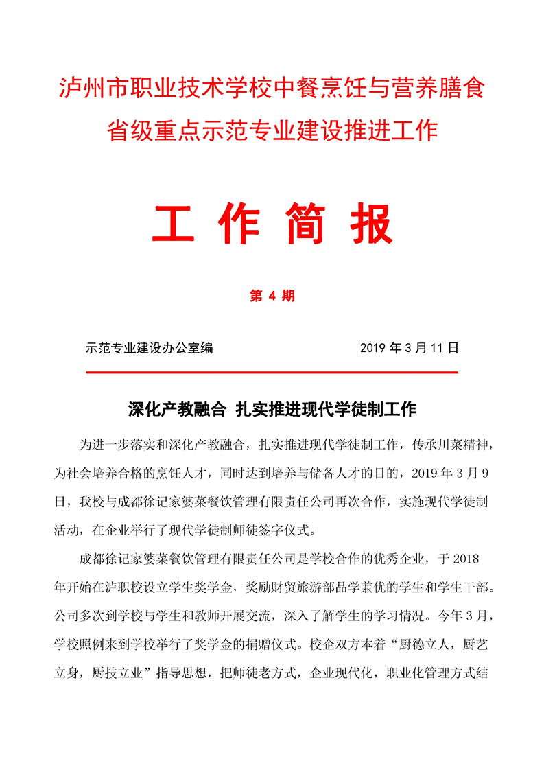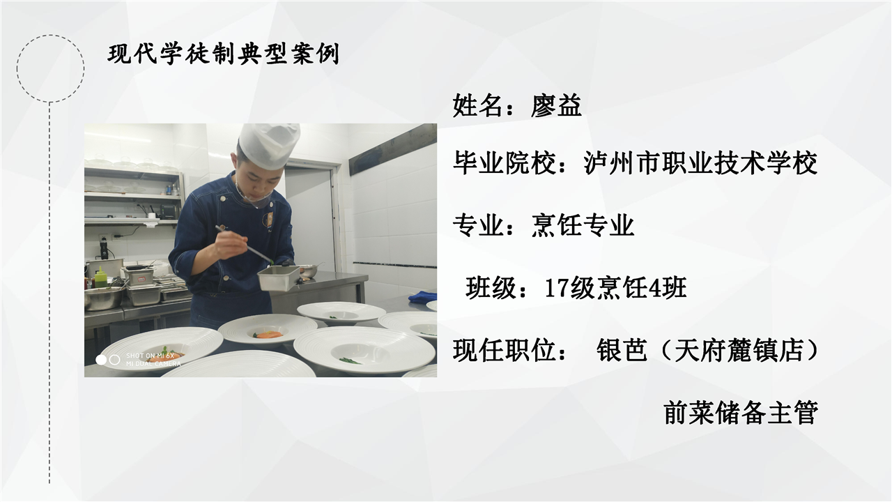 当前页面:中餐烹饪终期验收 >> 专业建设任务 >> 1.2创新人才培养模式 >> 1.2.2深化校企合作协同育人模式改革 >> 1.2.2.3现代学徒制