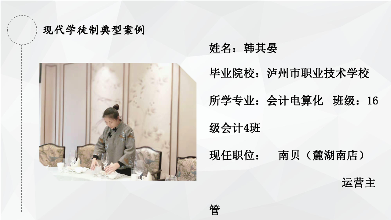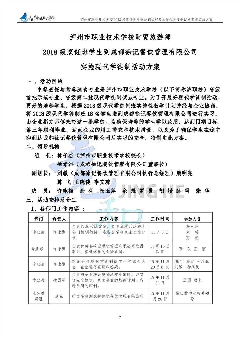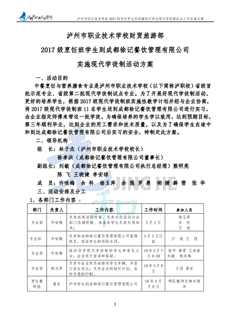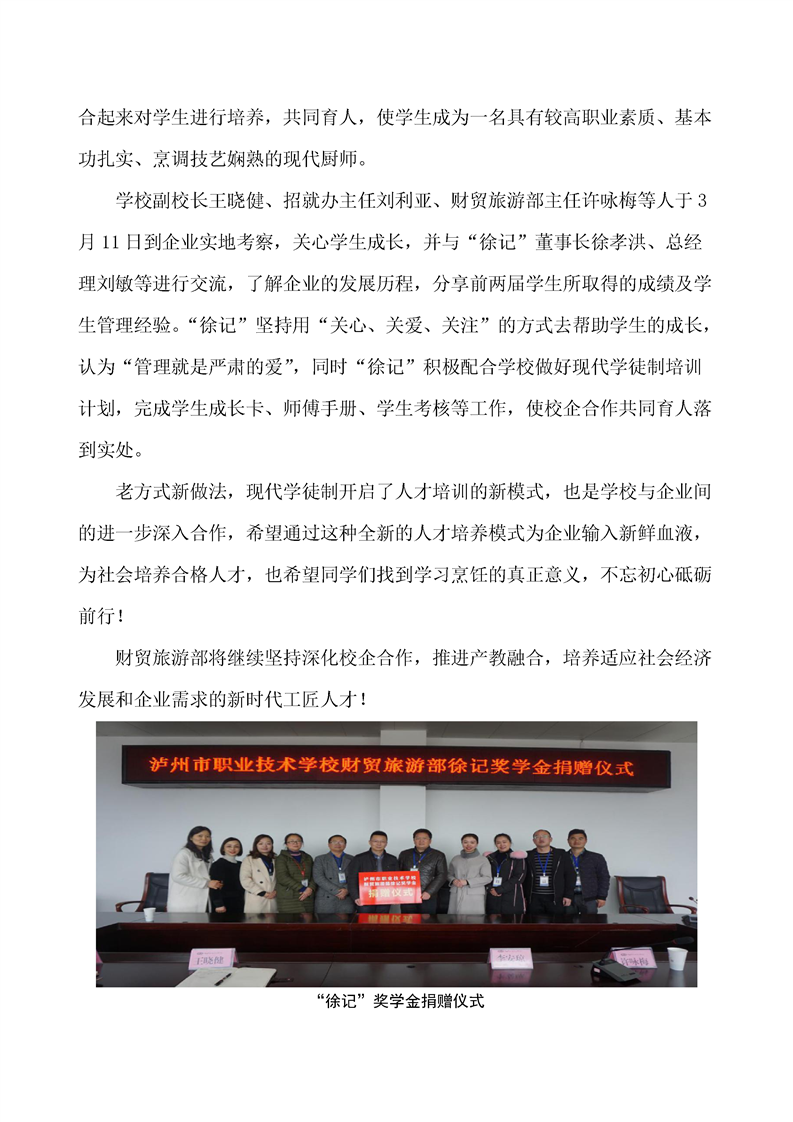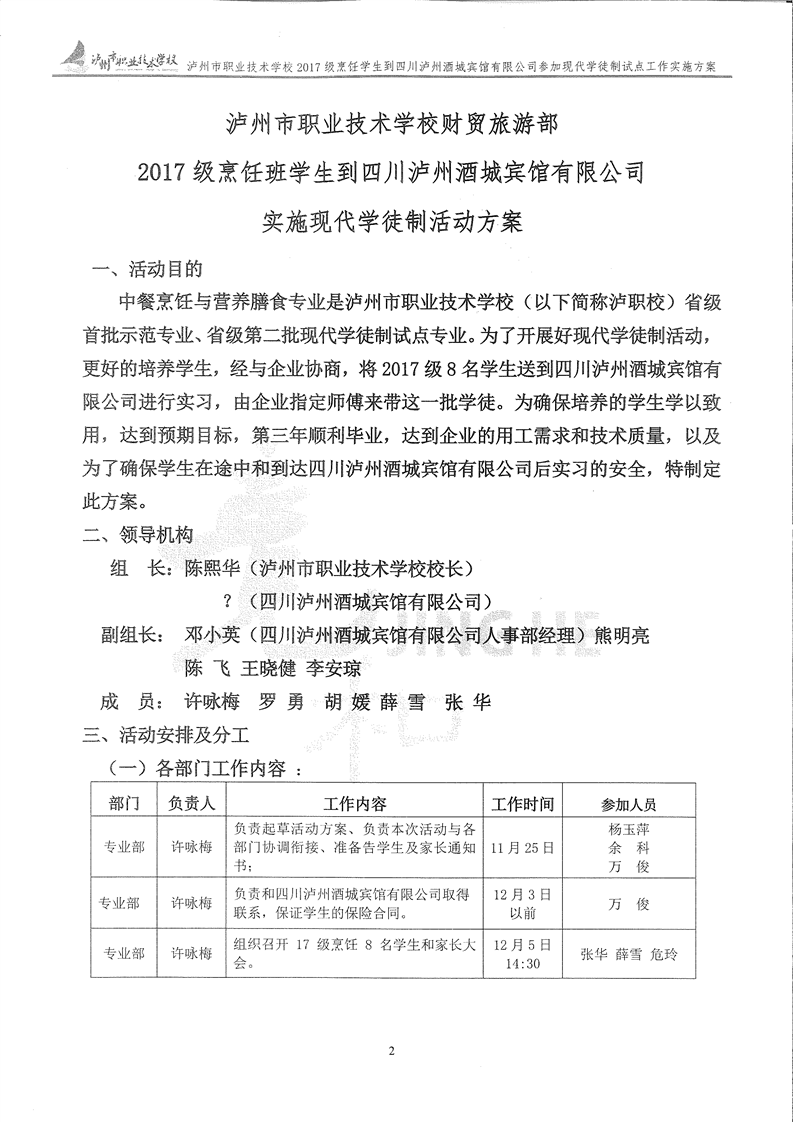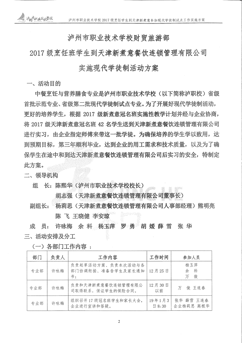当前页面:中餐烹饪终期验收 >> 专业建设任务 >> 1.2创新人才培养模式 >> 1.2.2深化校企合作协同育人模式改革 >> 1.2.2.3现代学徒制
