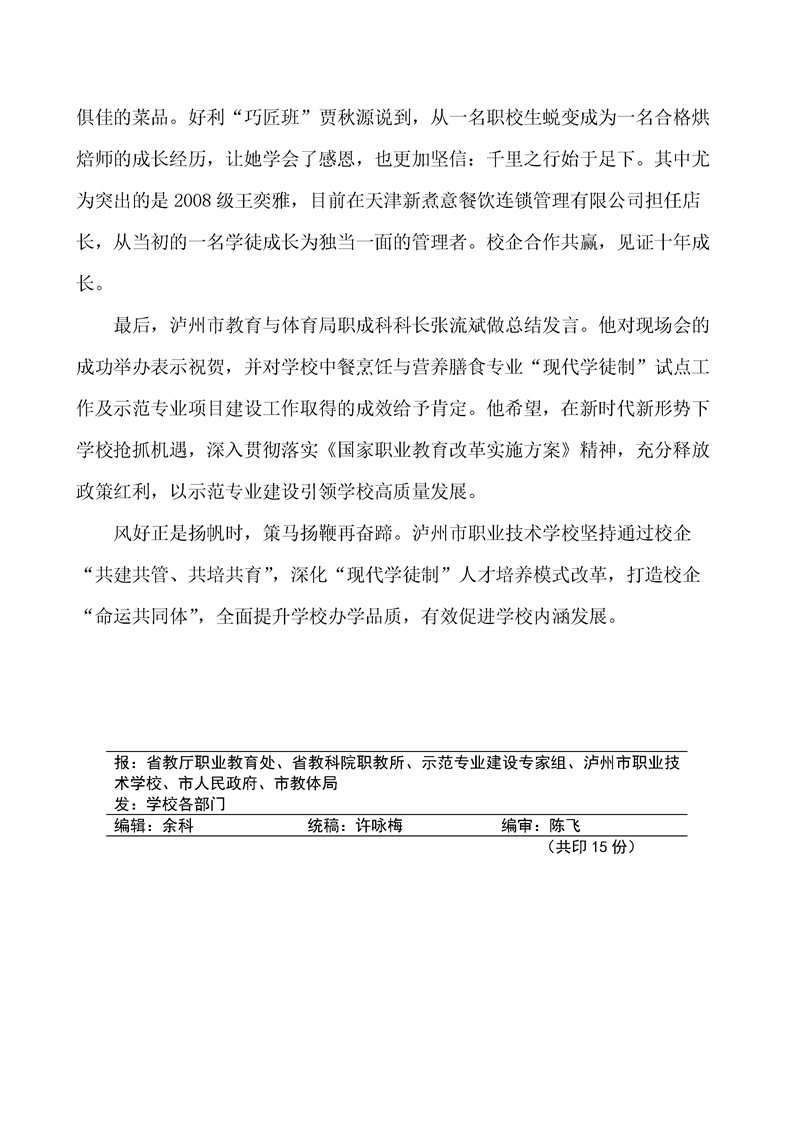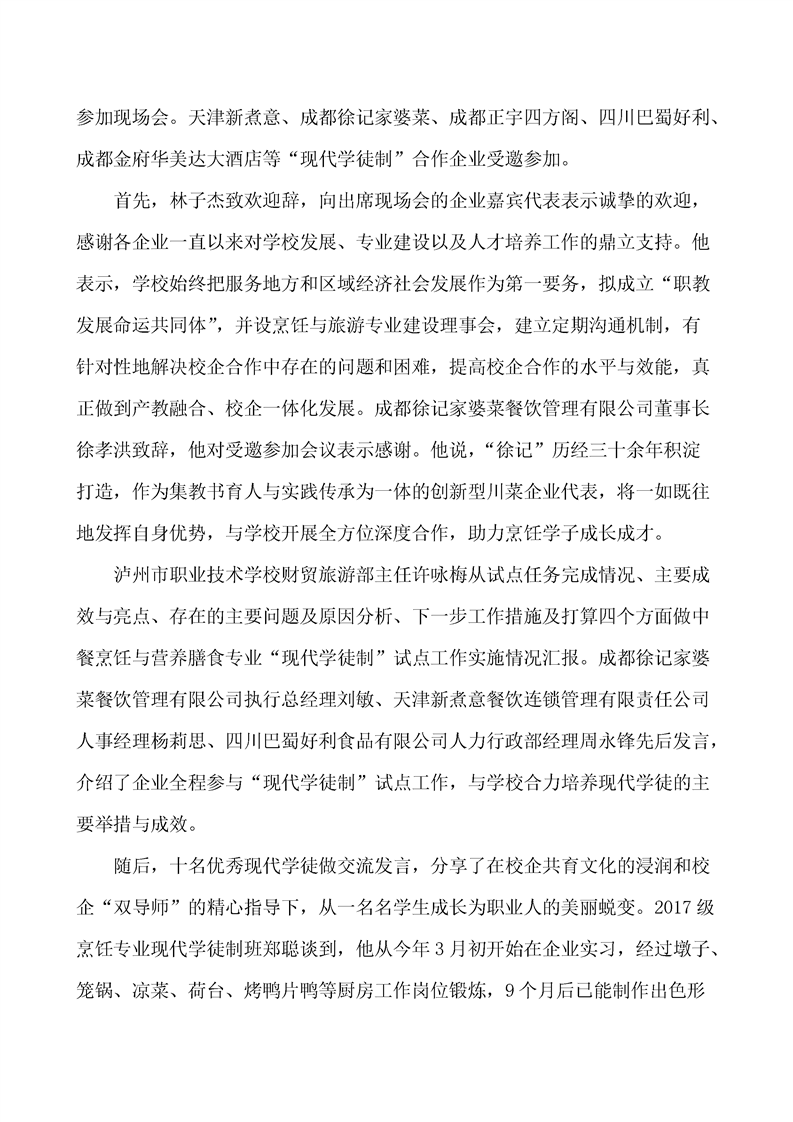 当前页面:中餐烹饪终期验收 >> 专业建设任务 >> 1.2创新人才培养模式 >> 1.2.2深化校企合作协同育人模式改革 >> 1.2.2.3现代学徒制