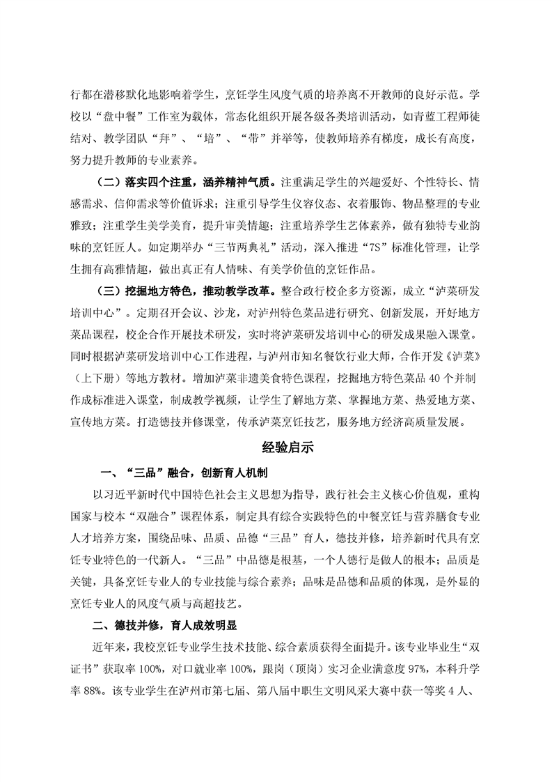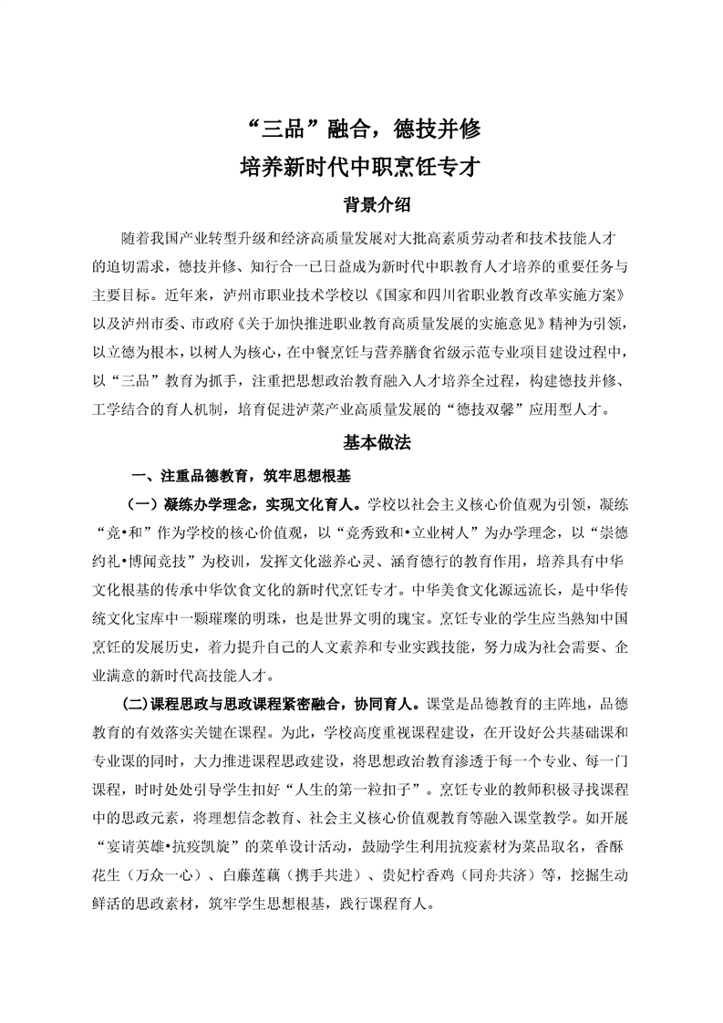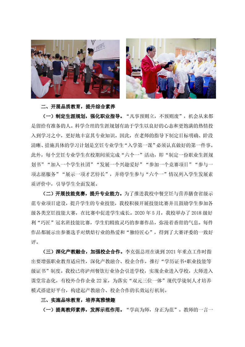 当前页面:中餐烹饪终期验收 >> 专业建设任务 >> 1.2创新人才培养模式 >> 1.2.3落实立德树人根本任务 >> 1.2.3.2五育融合