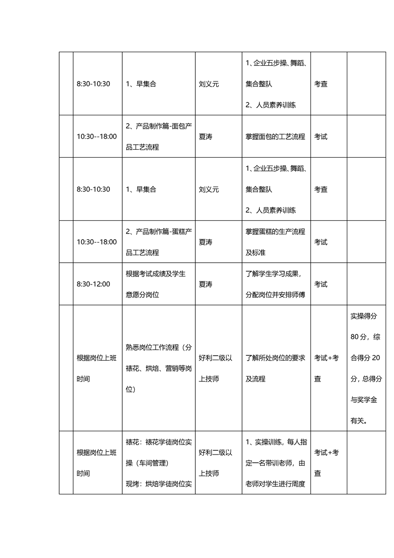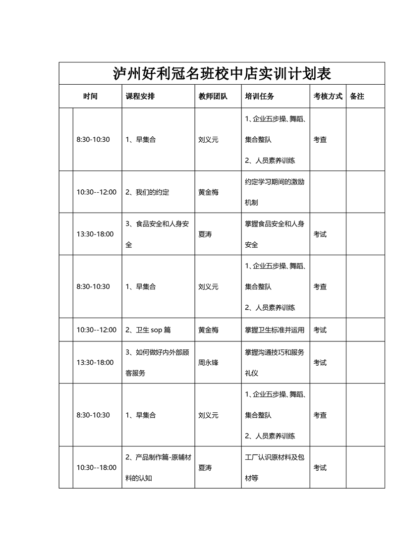 6.泸州好利冠名班校中店实训计划表