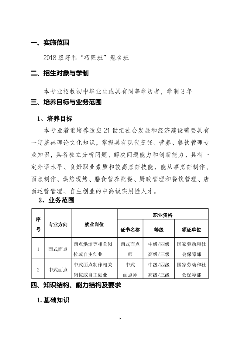 2.“好利冠名班”烹饪专业实施性教学计划.
