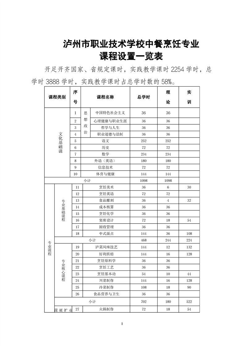 当前页面:中餐烹饪终期验收 >> 专业建设任务 >> 1.3深化课程教学改革 >> 1.3.1课程体系建设 >> 1.3.1.2课程设置