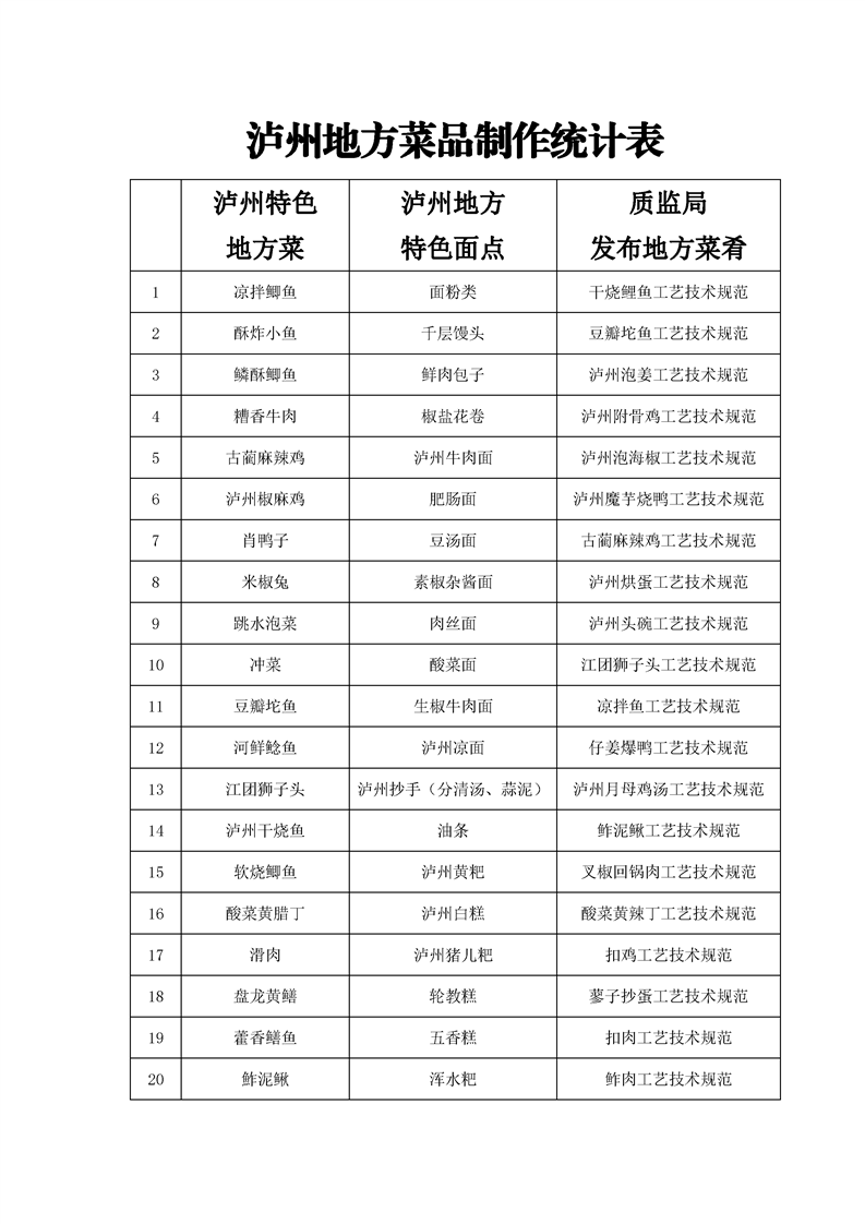 2.泸州地方菜品制作统计表