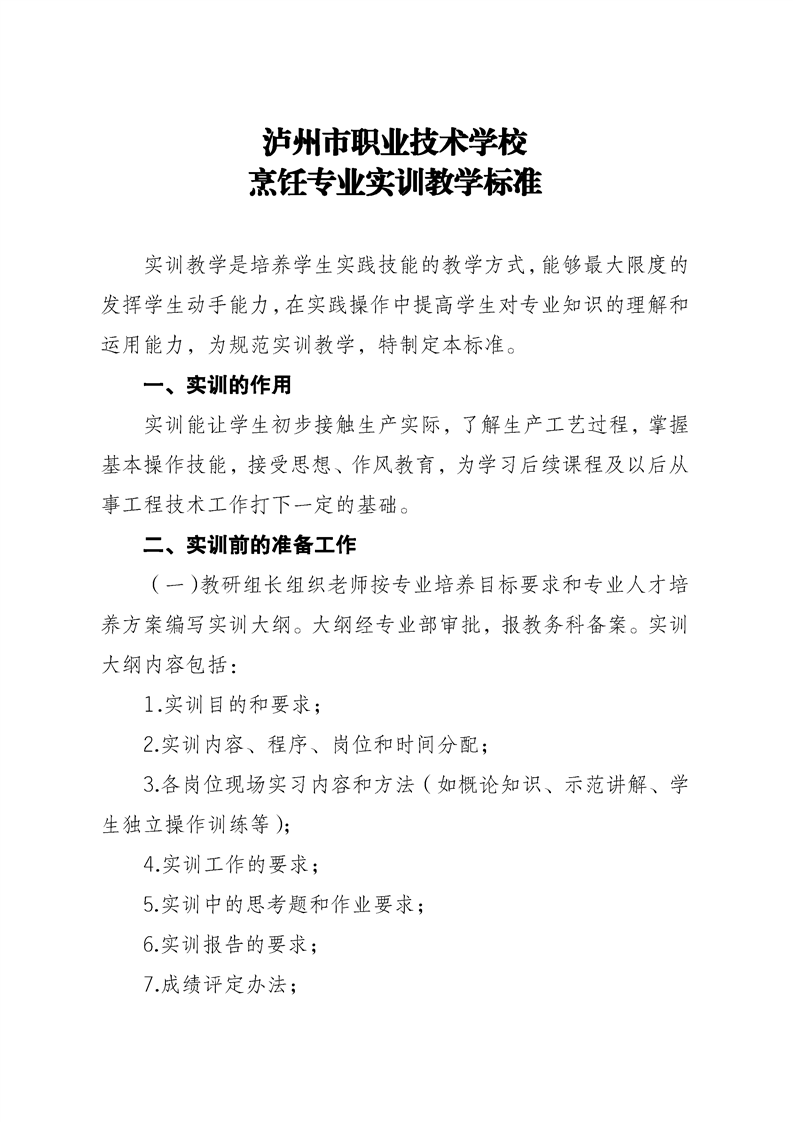 6.中餐烹饪专业实训教学标准