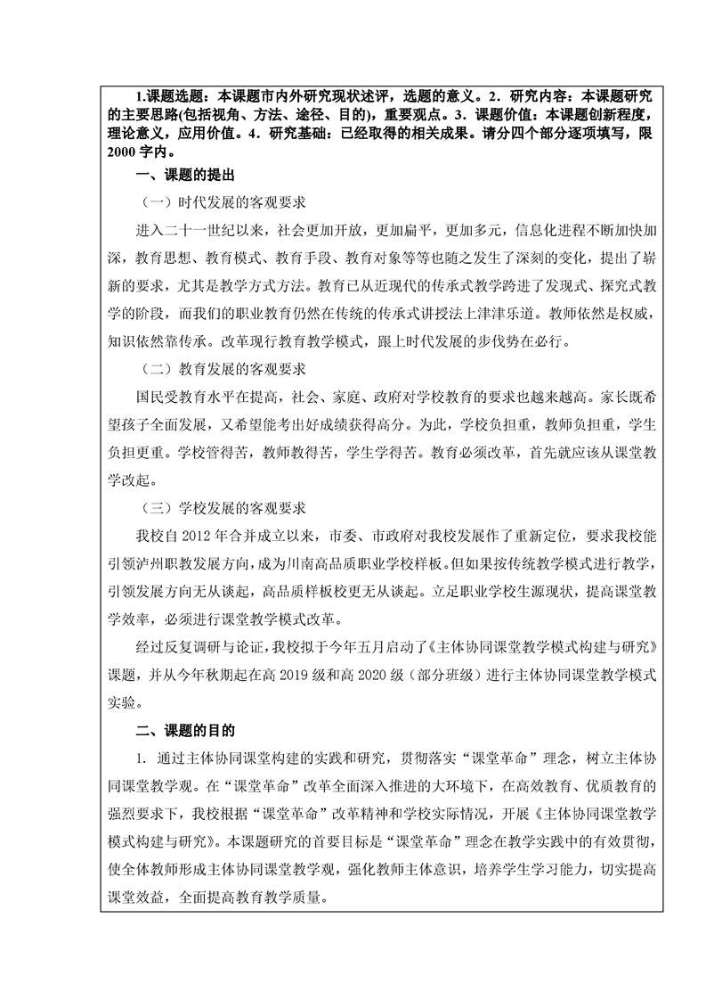 1.“主体协同课堂”市级教科研课题