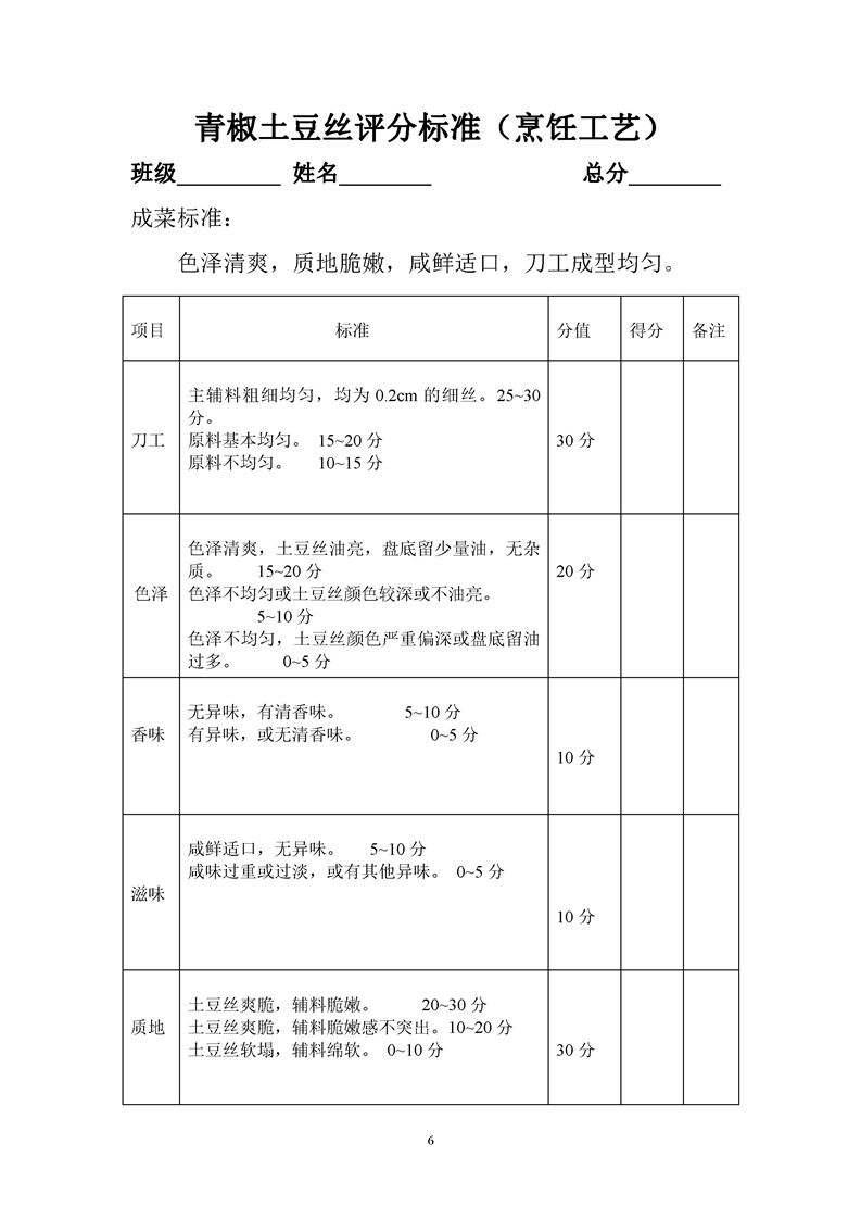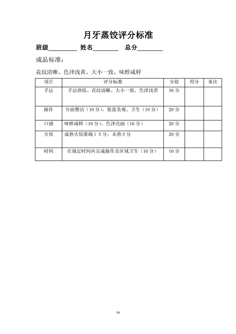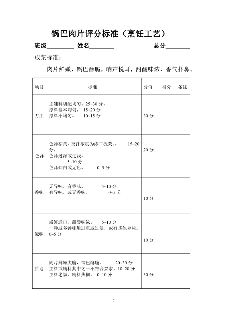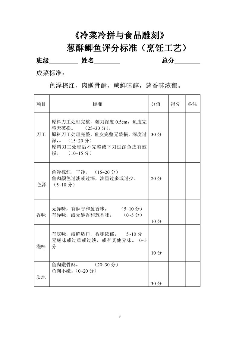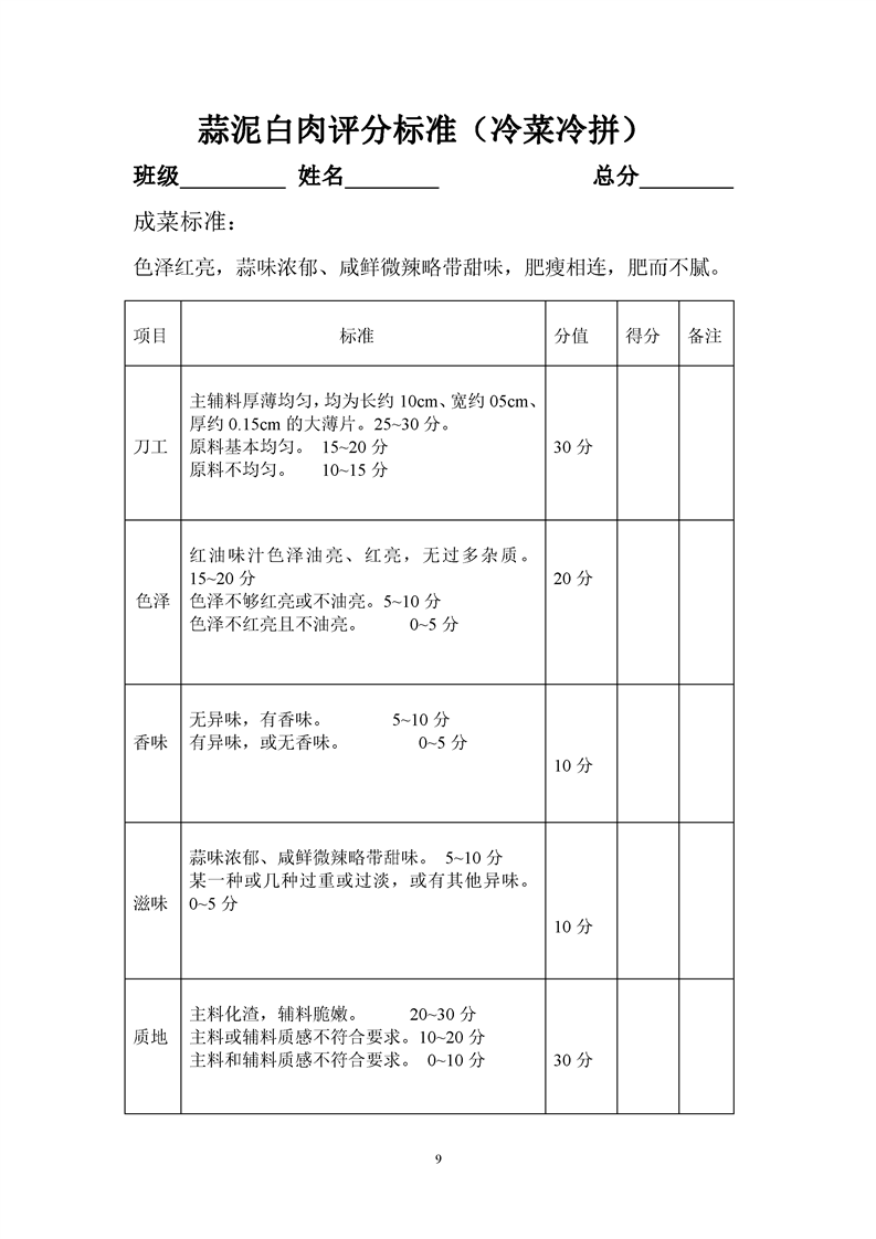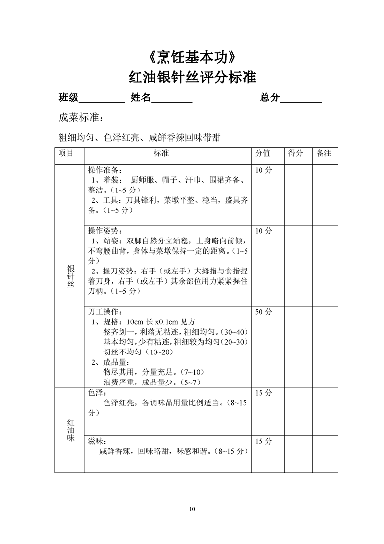 1.中餐烹饪专业专业课程考核标准及考核表