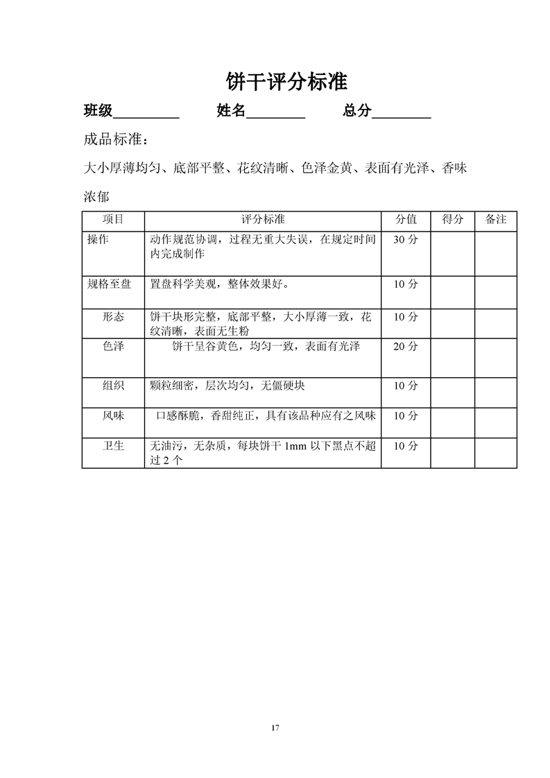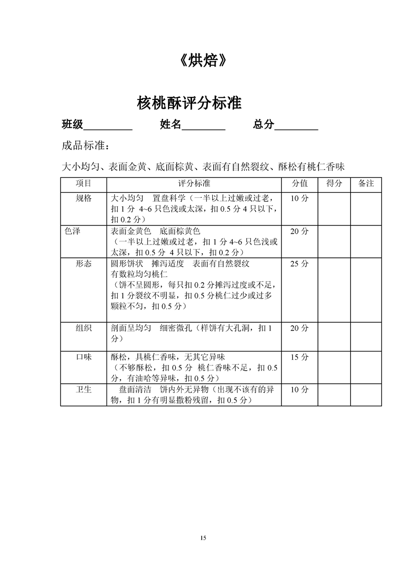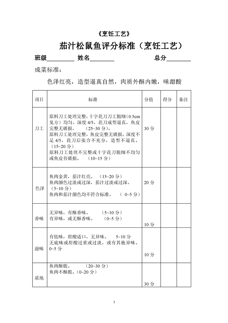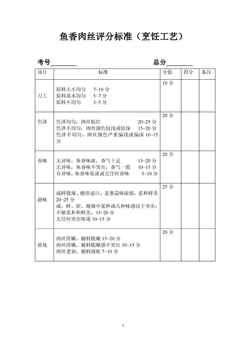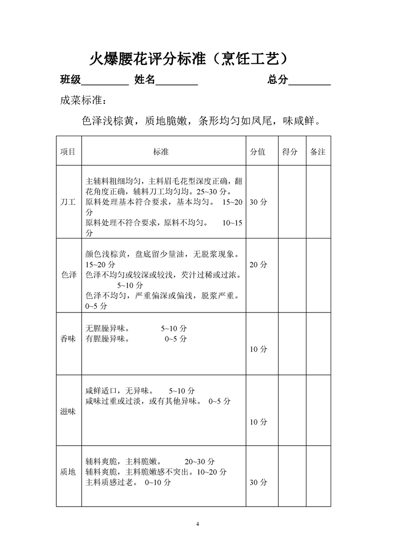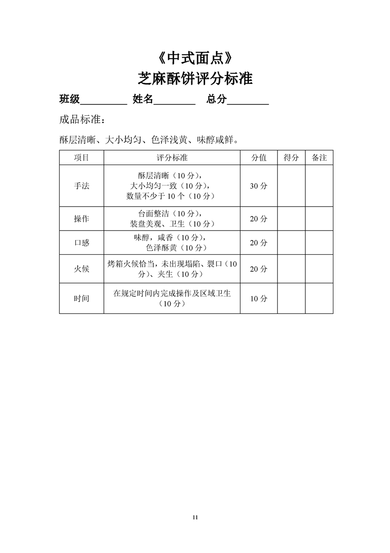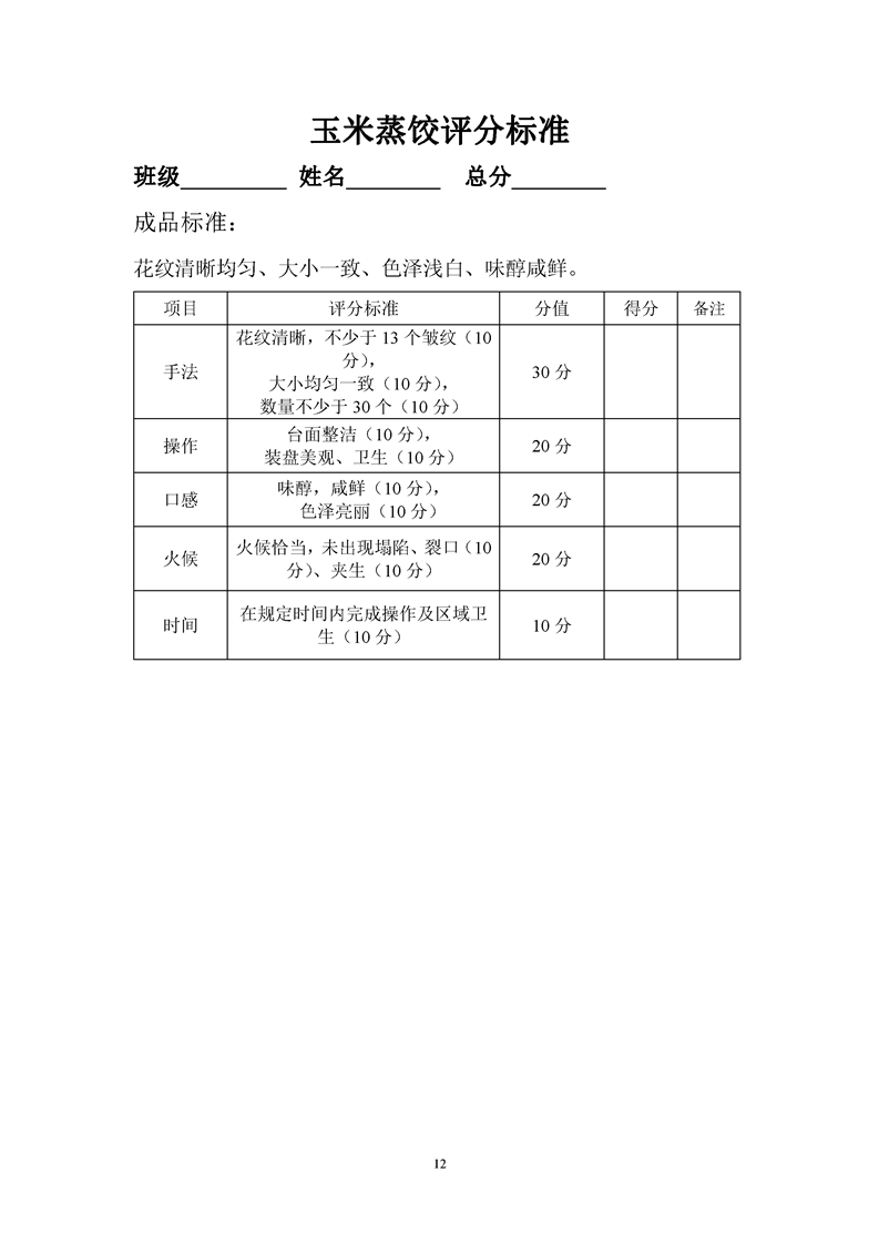 1.中餐烹饪专业专业课程考核标准及考核表
