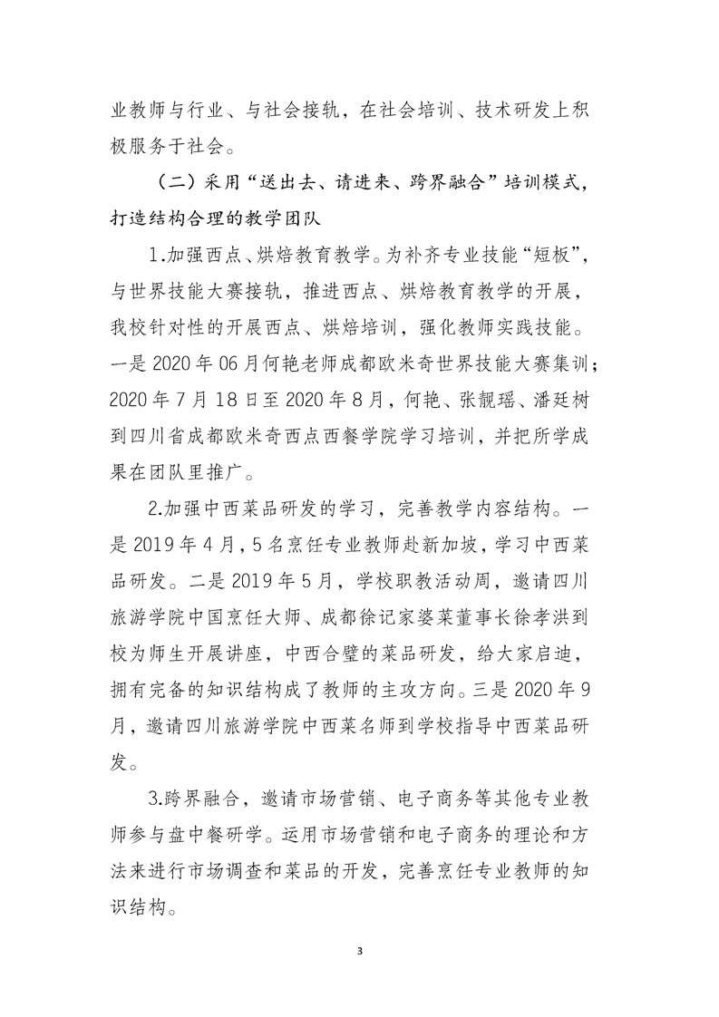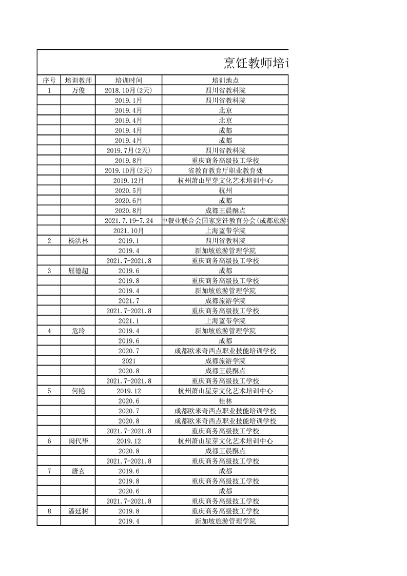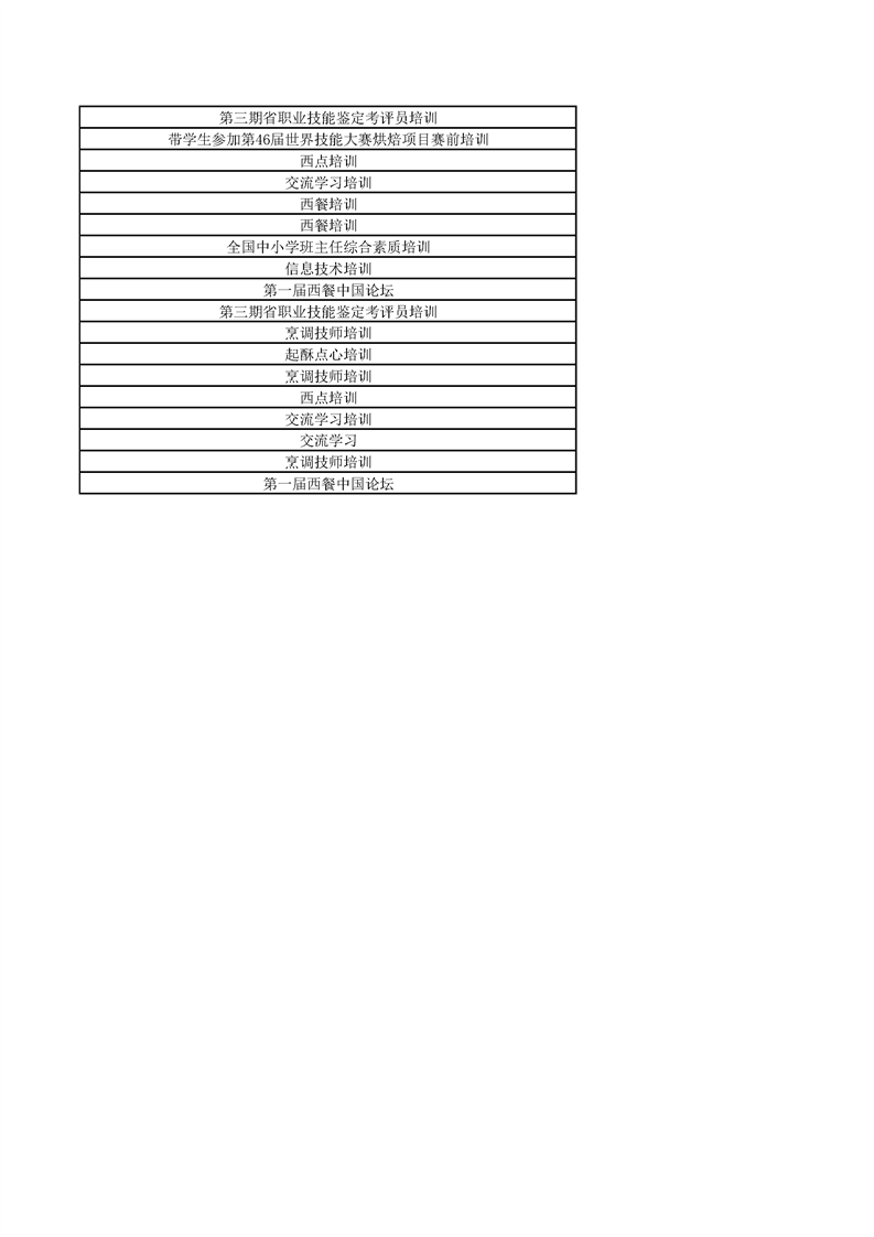 当前页面:中餐烹饪终期验收 >> 专业建设任务 >> 1.4打造“双师型”专业教学团队 >> 1.4.2专业教学团队 >> 1.4.2.3培训机制健全