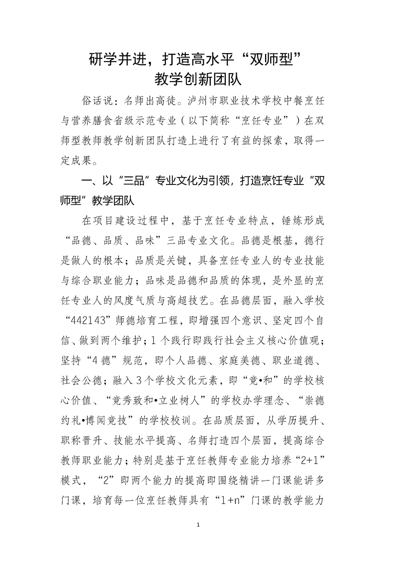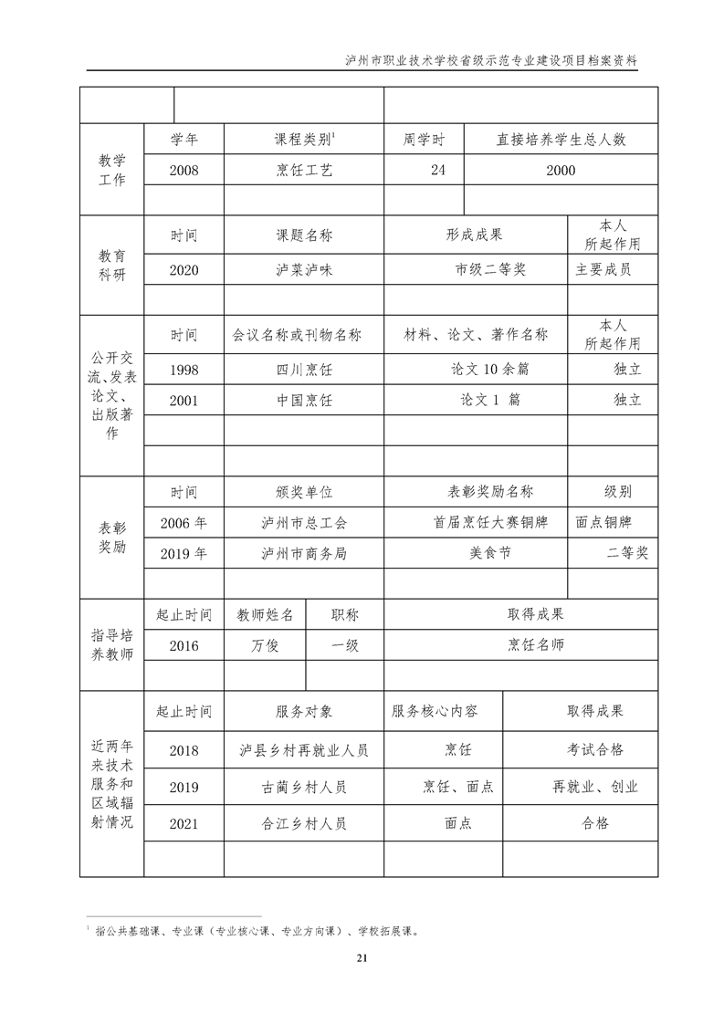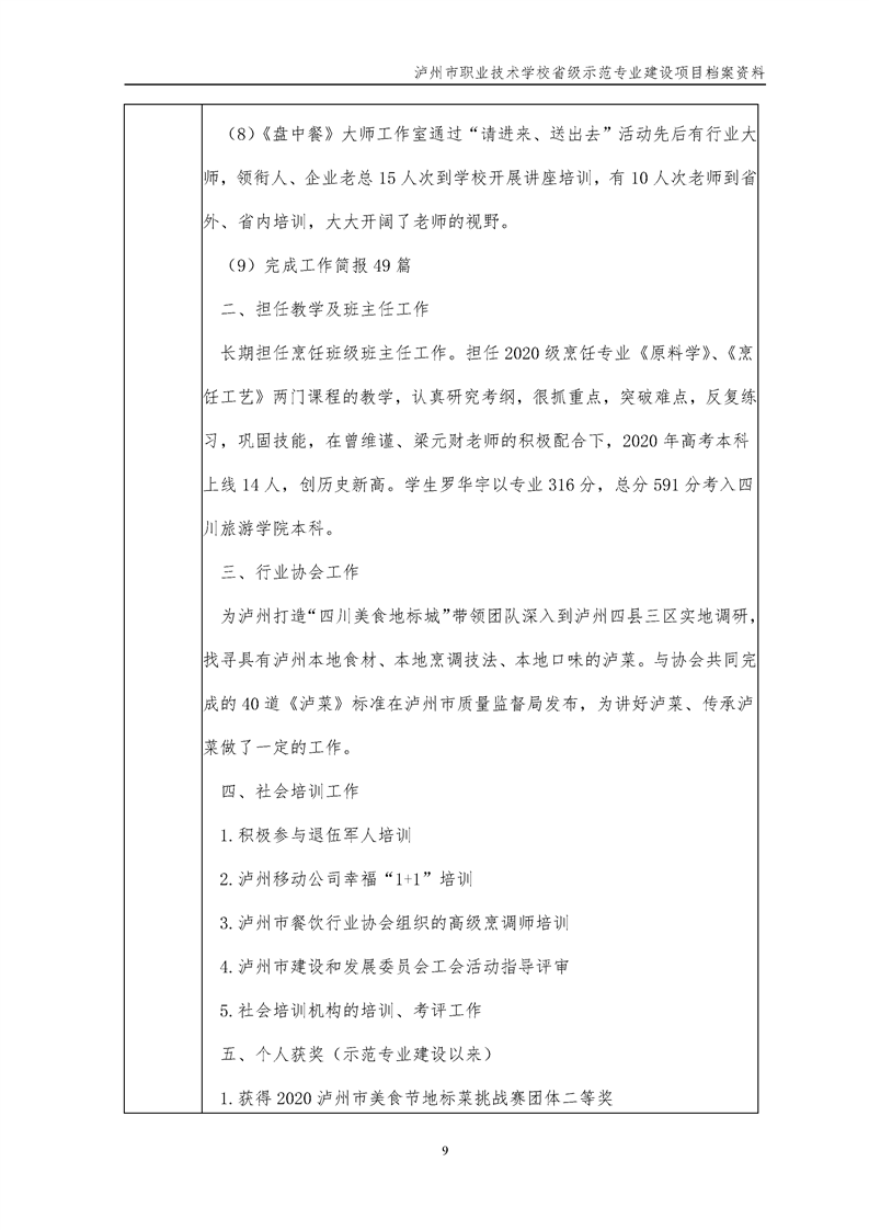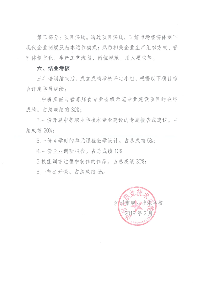 当前页面:中餐烹饪终期验收 >> 专业建设任务 >> 1.4打造“双师型”专业教学团队 >> 1.4.2专业教学团队 >> 1.4.2.3培训机制健全