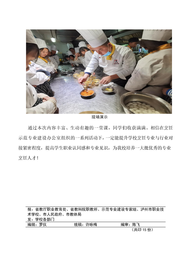 当前页面:中餐烹饪终期验收 >> 专业建设任务 >> 1.4打造“双师型”专业教学团队 >> 1.4.3“双师型”队伍建设 >> 1.4.3.3校企人员互聘、互兼