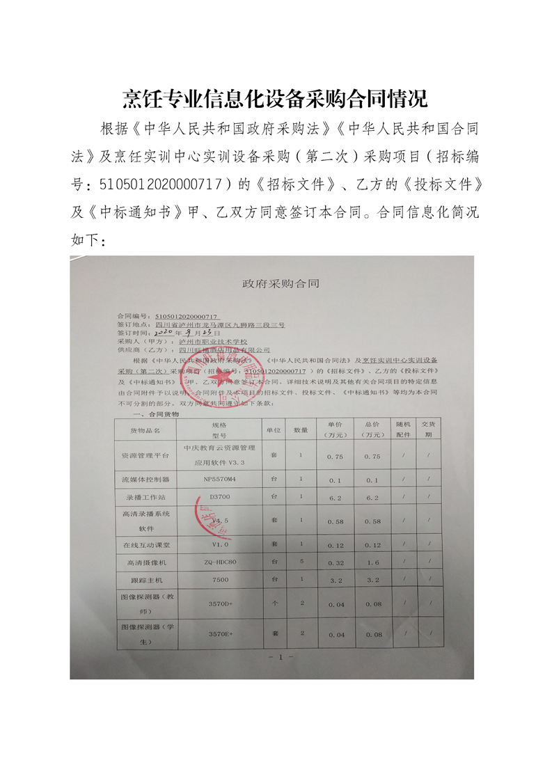 当前页面:中餐烹饪终期验收 >> 专业建设任务 >> 1.5改善专业教学条件 >> 1.5.1校内外实训基地建设 >> 1.5.1.3加强信息化技术