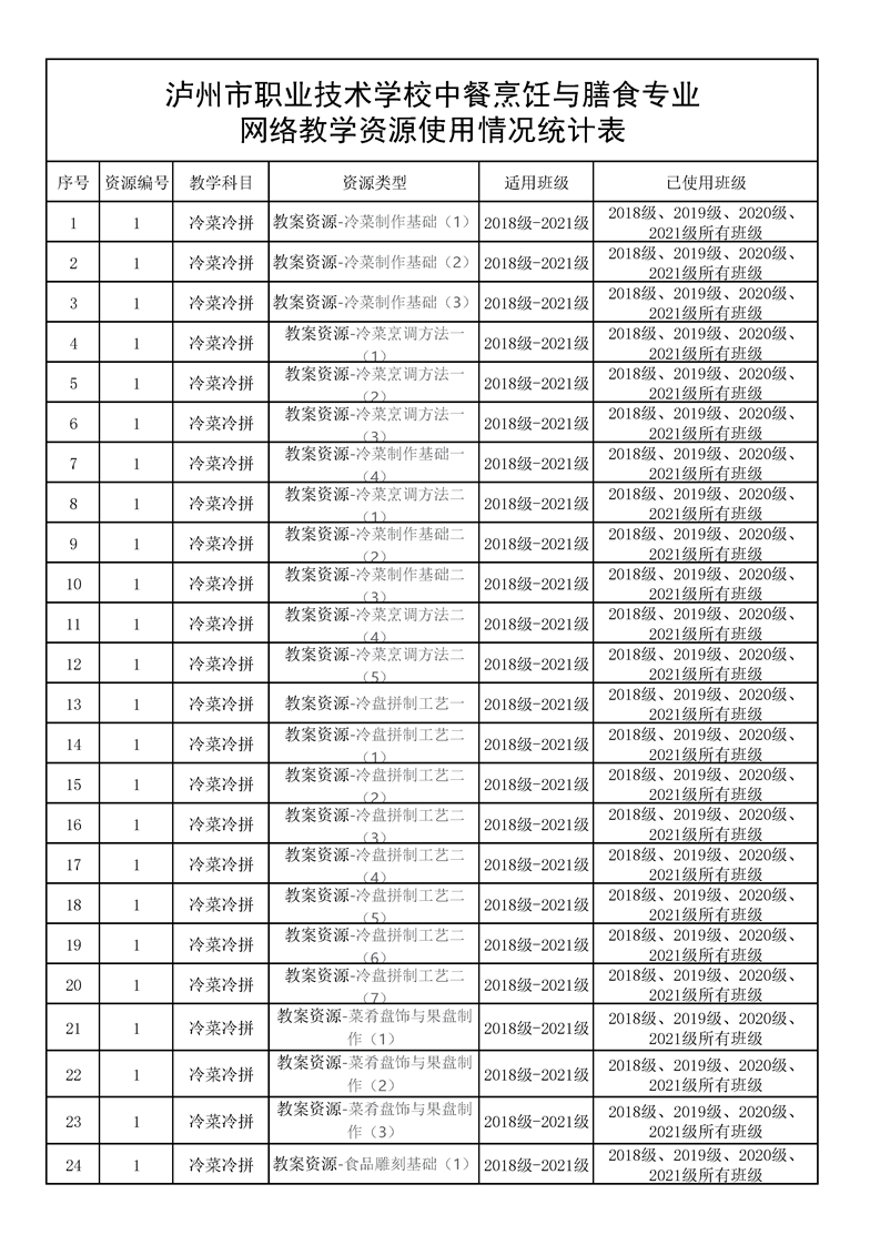 泸州市职业技术学校中餐烹饪专业网络教学资源使用情况统计表.pdf