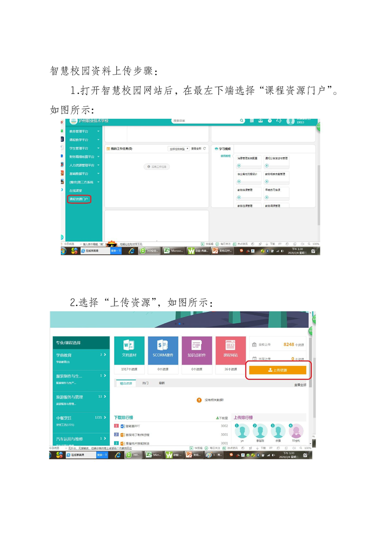 泸州市职业技术学校智慧校园资料上传步骤