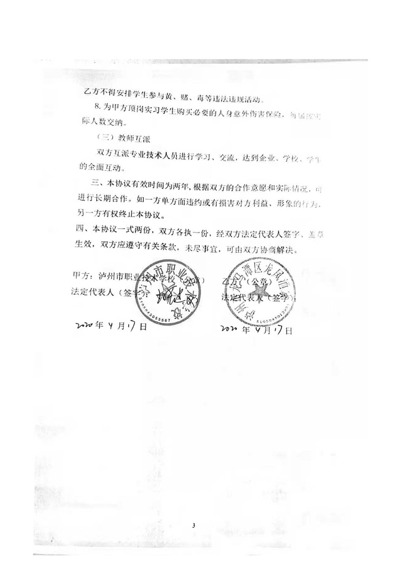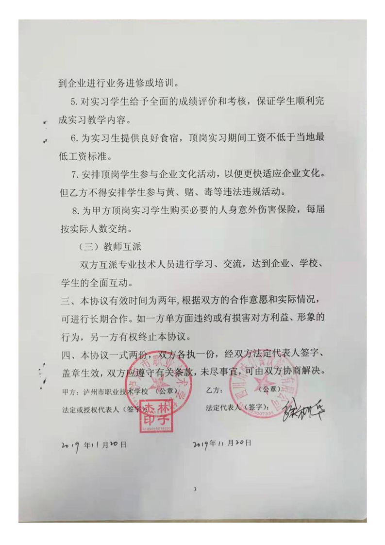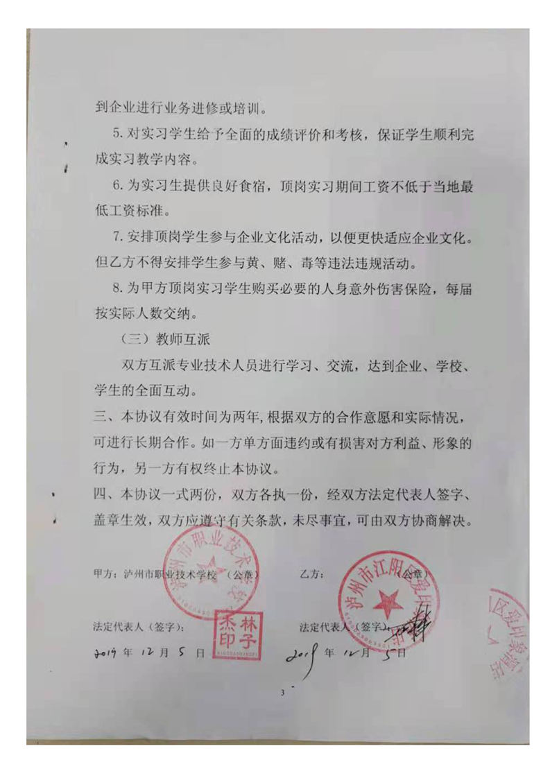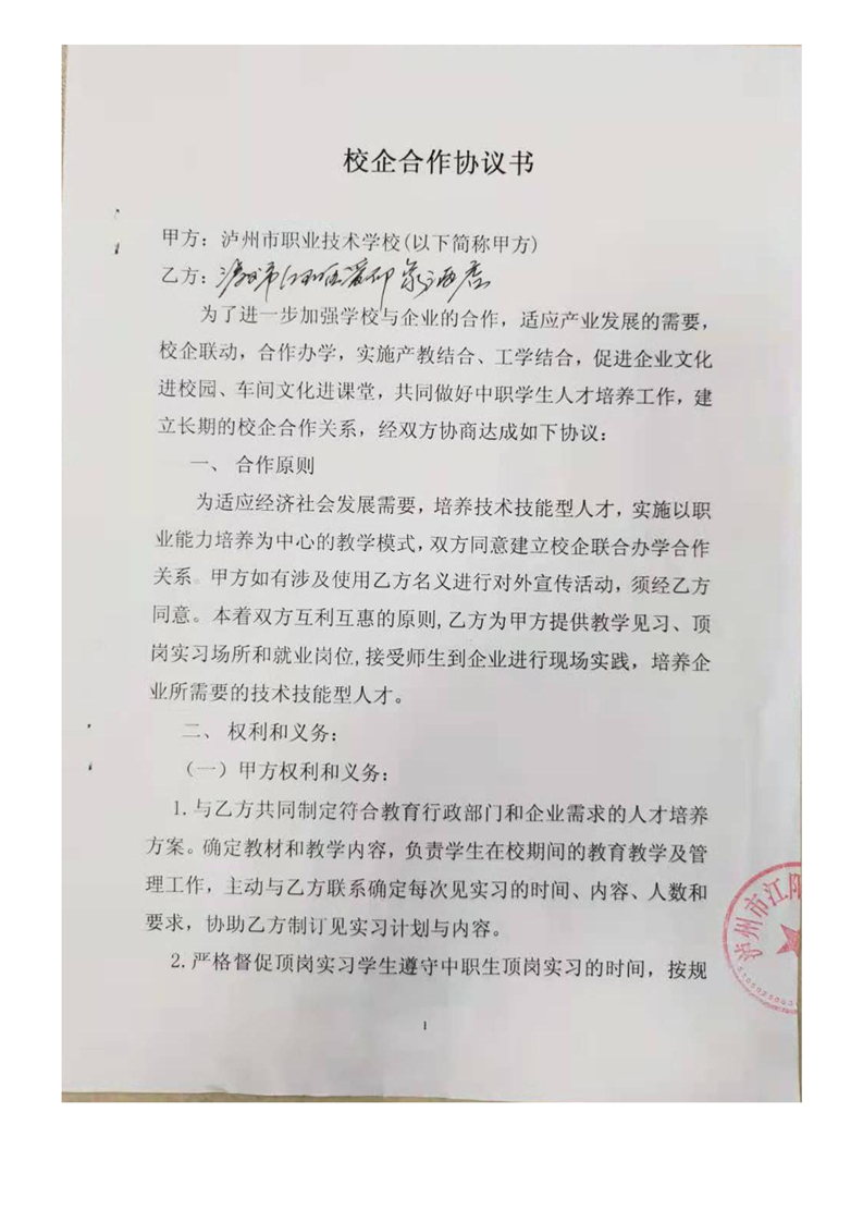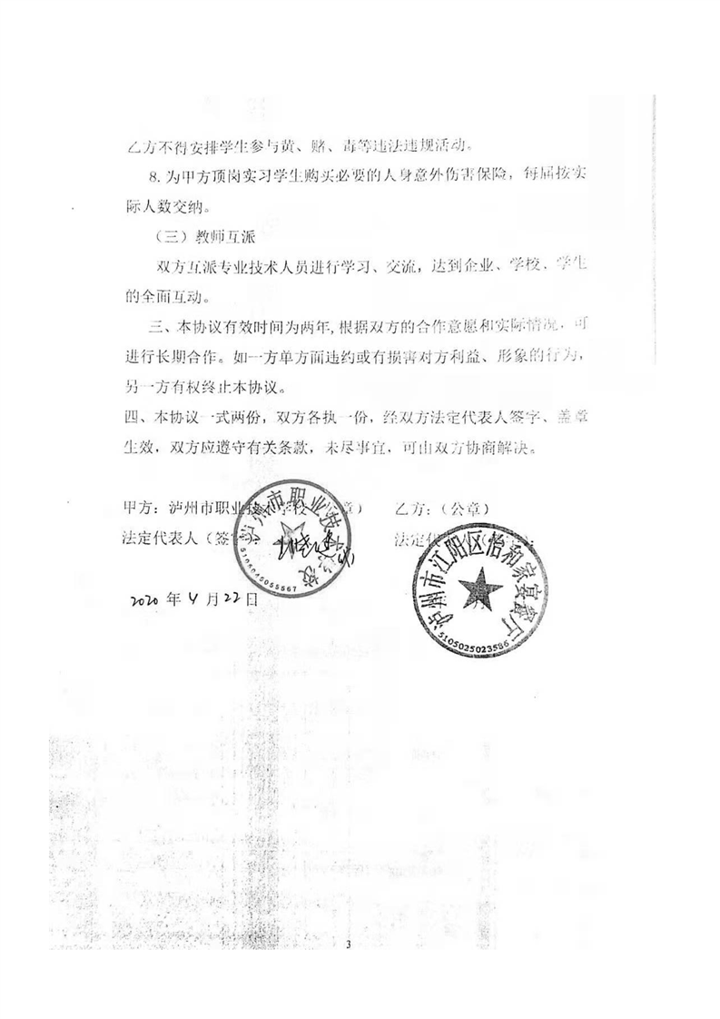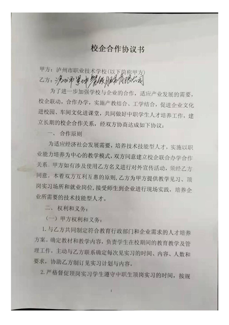 泸职校新增校外实训基地校企合作协议(5份)