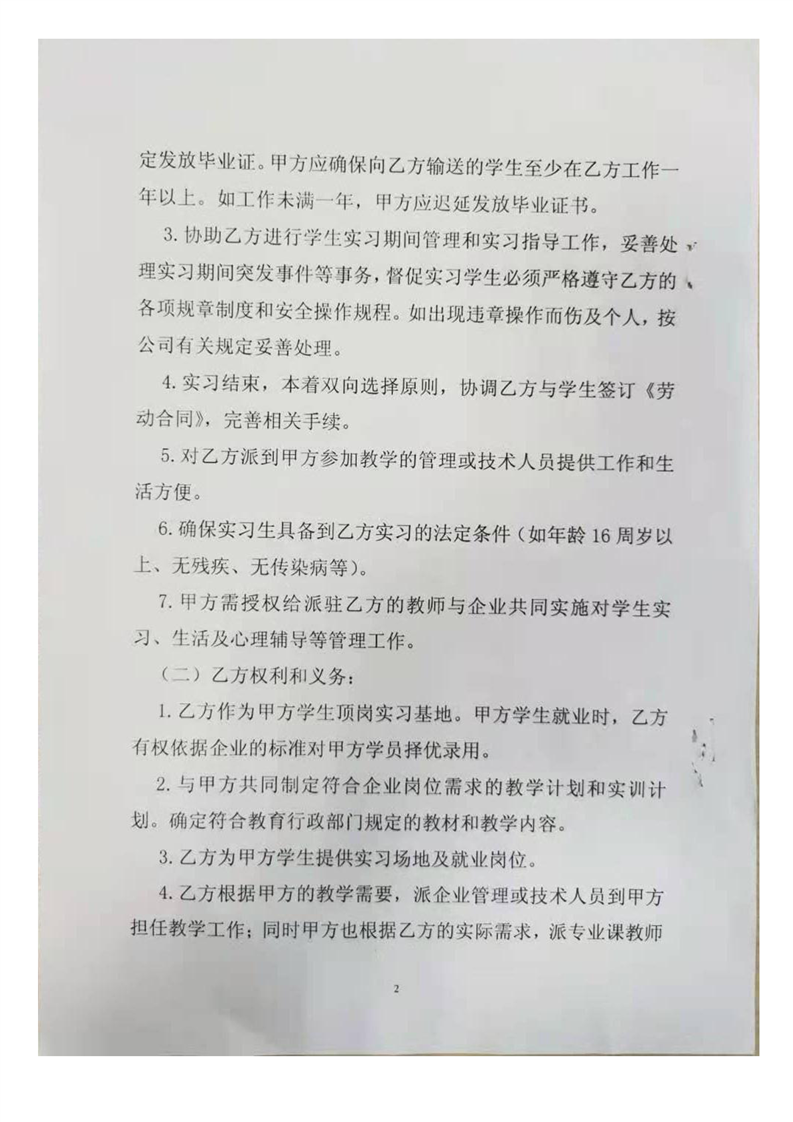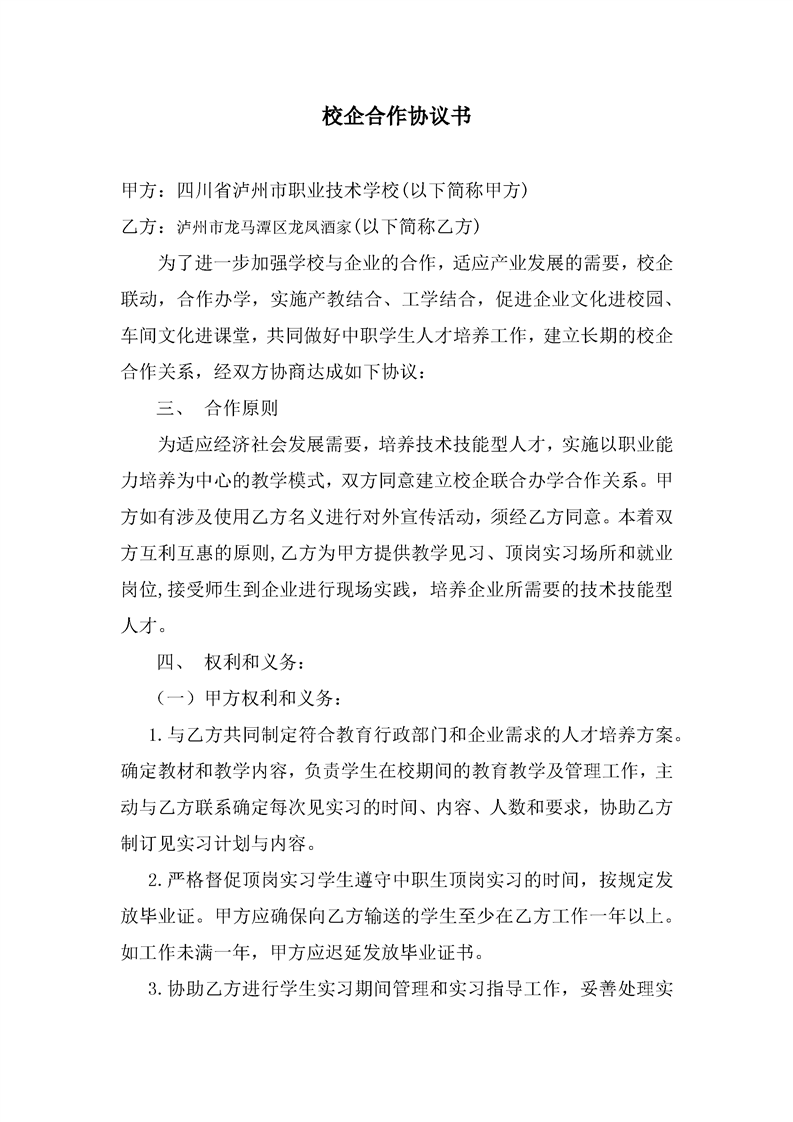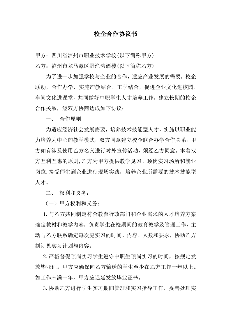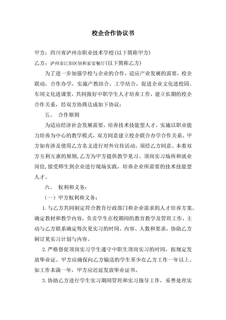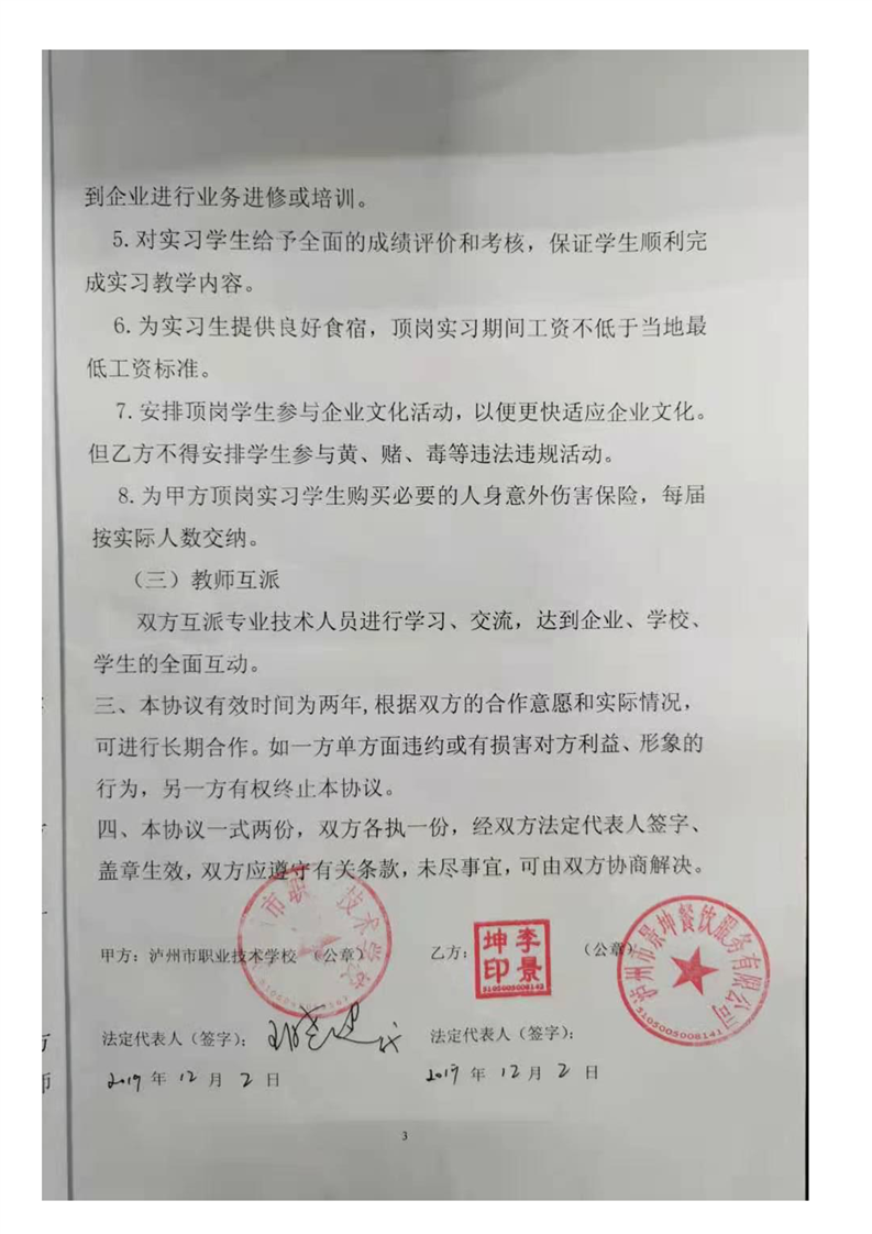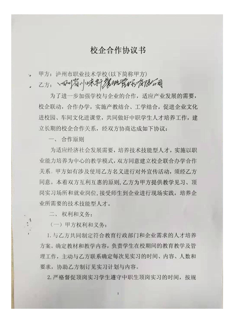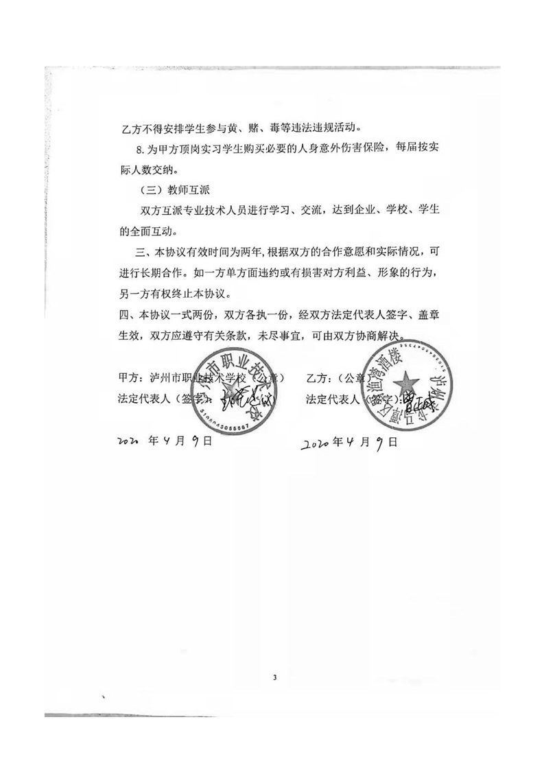 泸职校新增校外实训基地校企合作协议(5份)