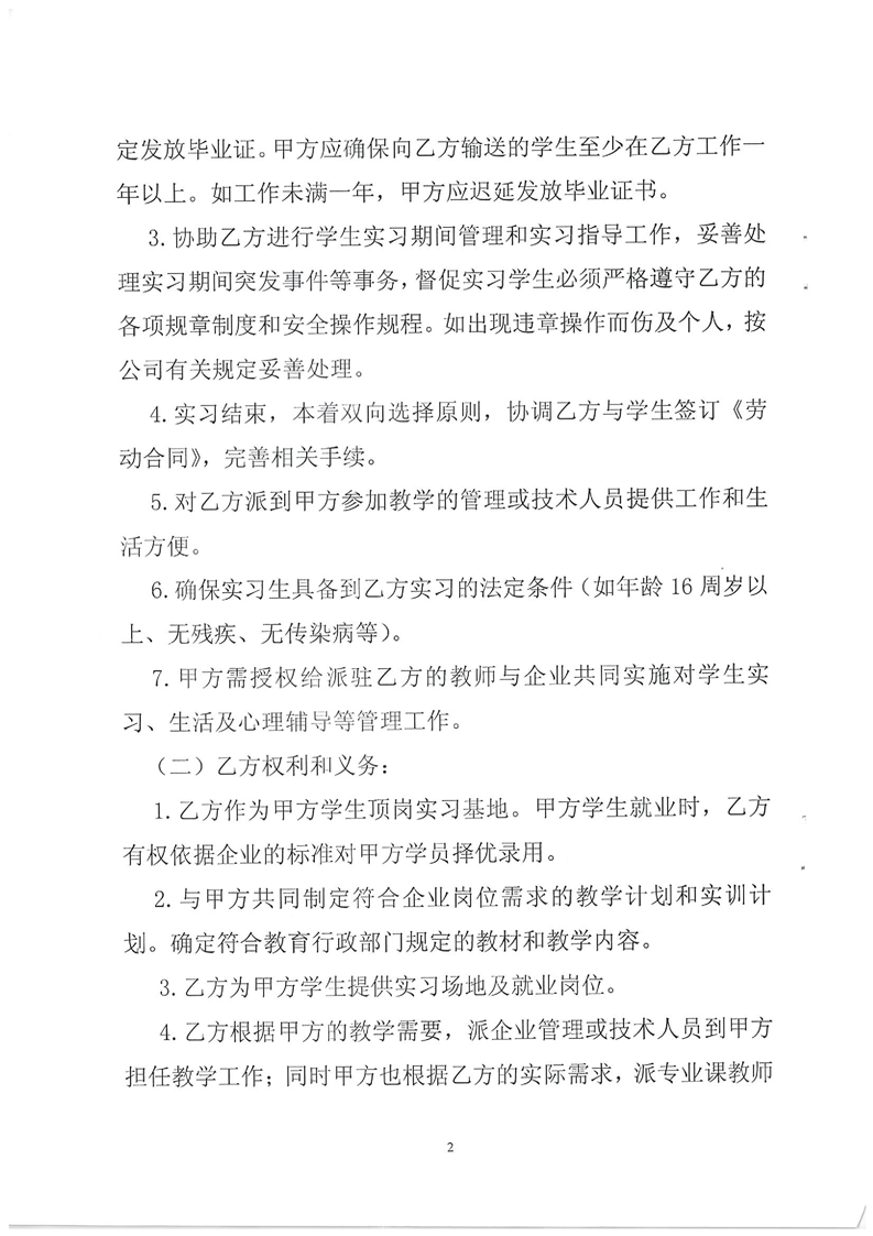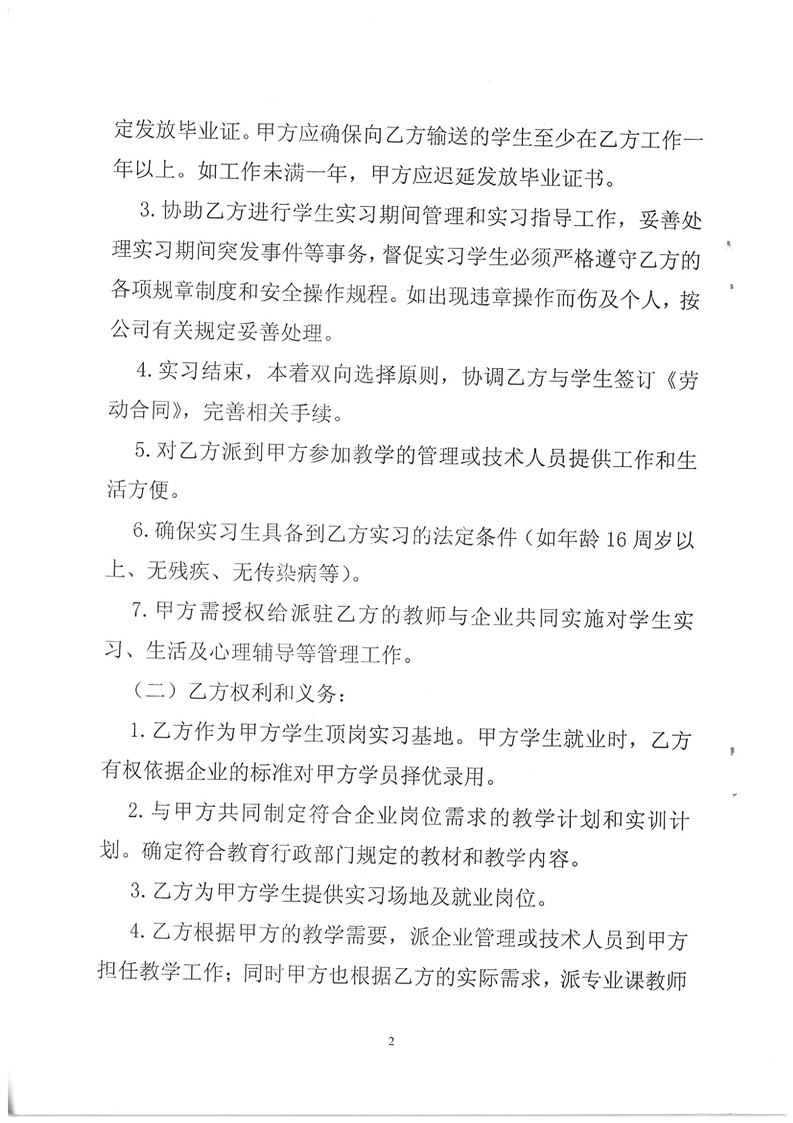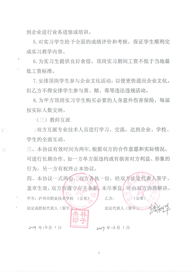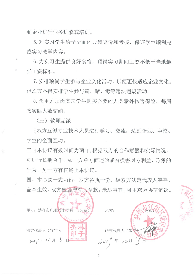 泸州市职业技术学校中餐烹饪专业校企合作协议
