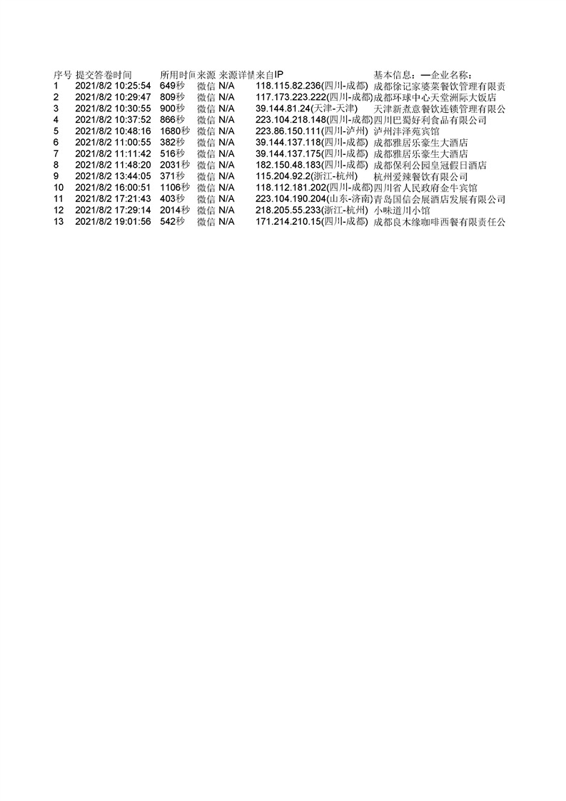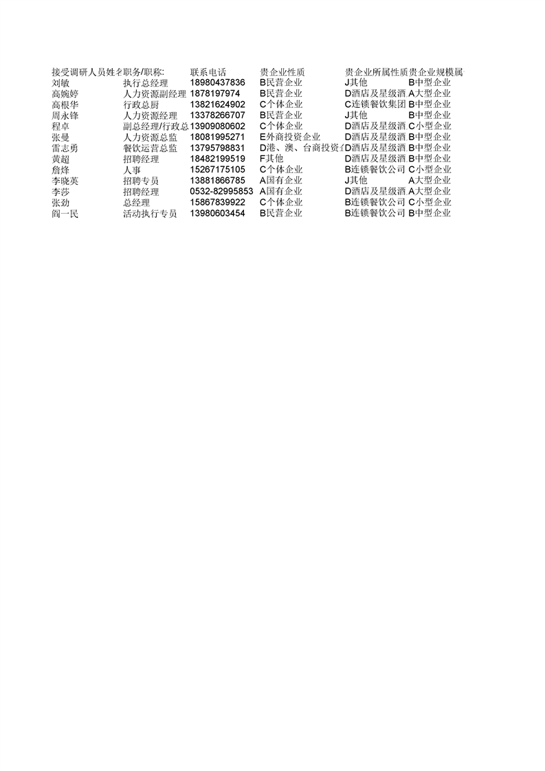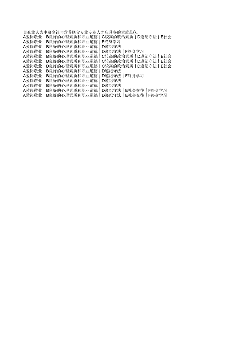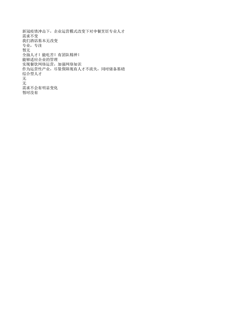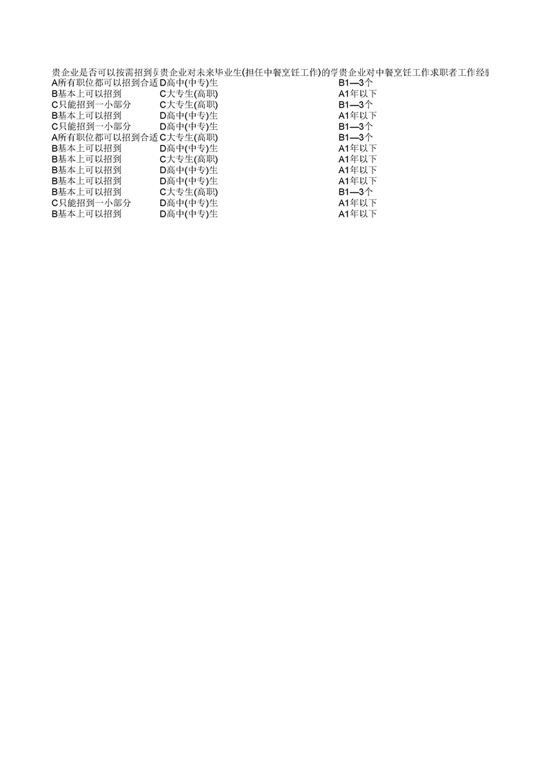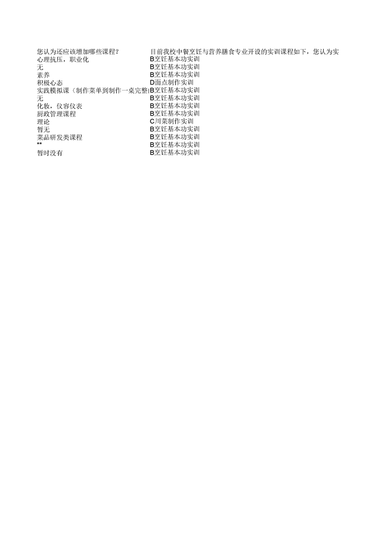 泸州市职业技术学校中餐烹饪专业企业需求和课程改革调研问卷统计表