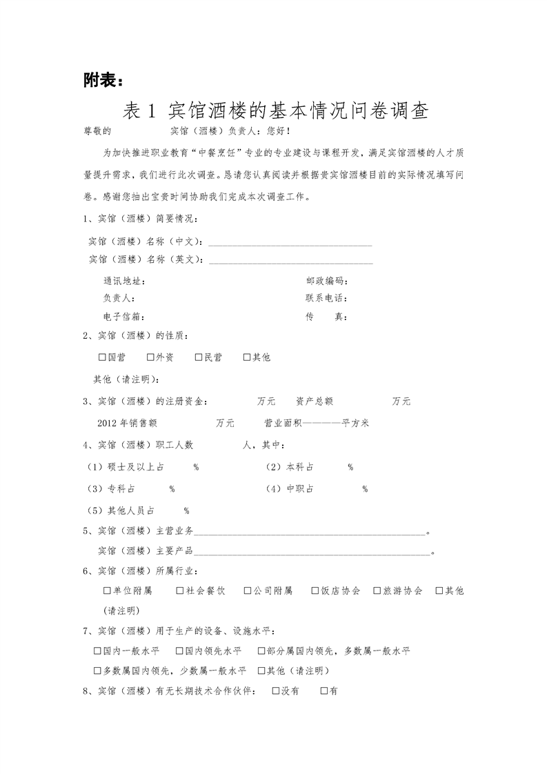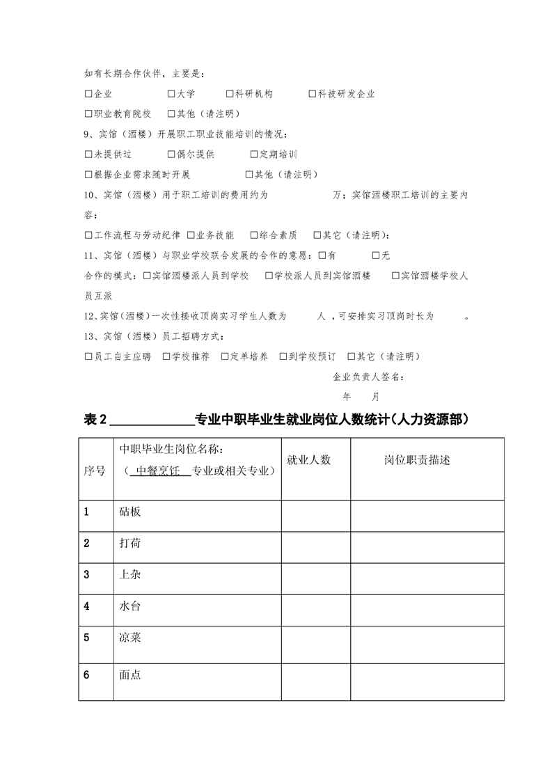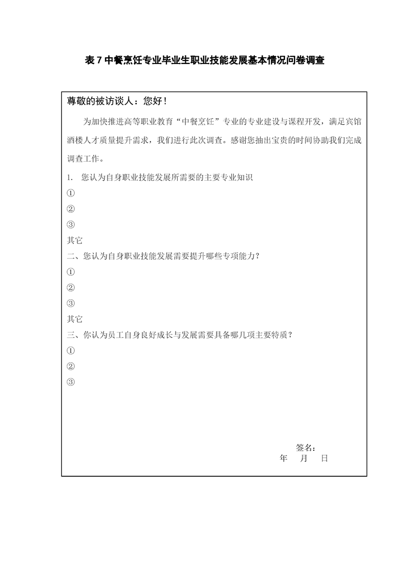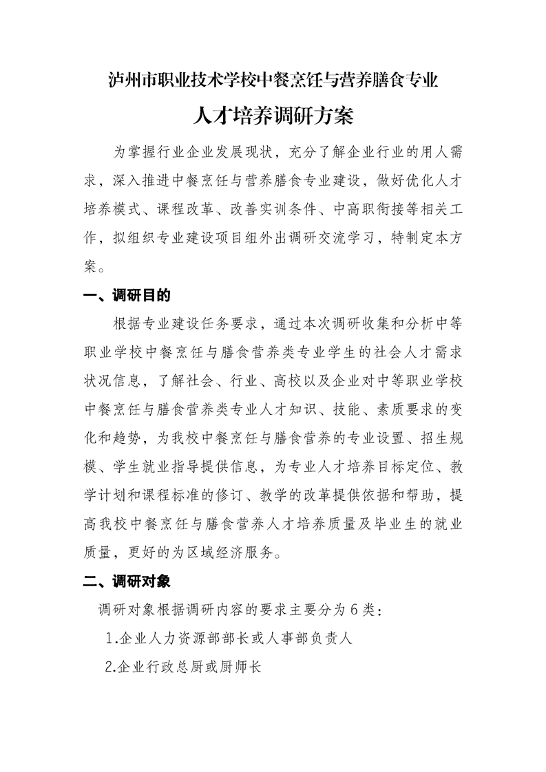 烹饪专业人才培养调研方案