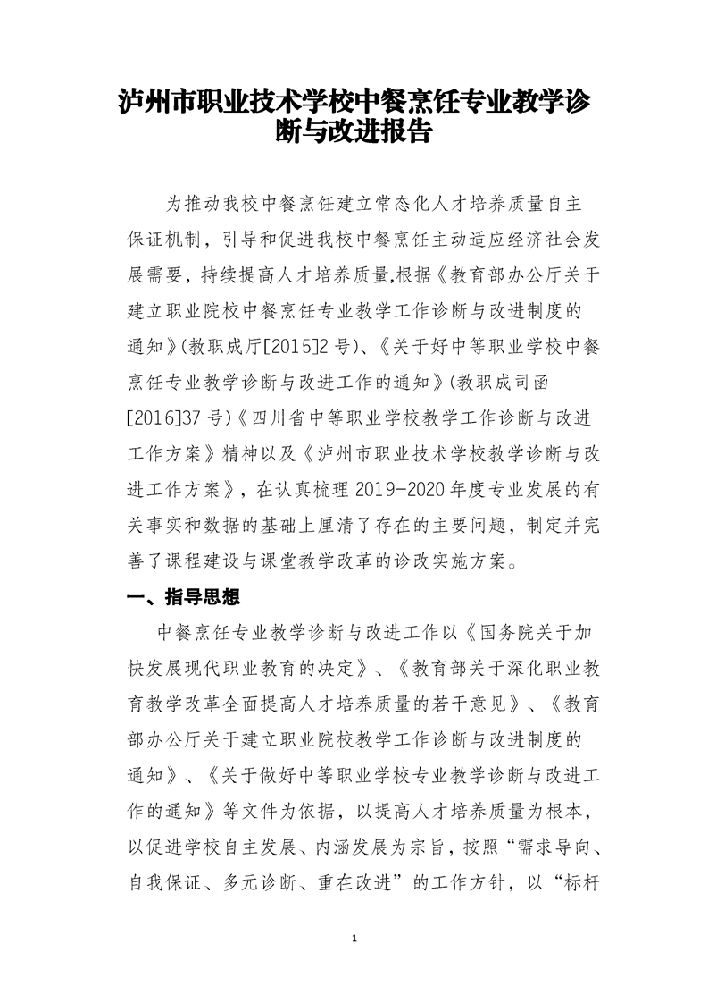泸州市职业技术学校教学诊断与改进报告(2019-2020年度)