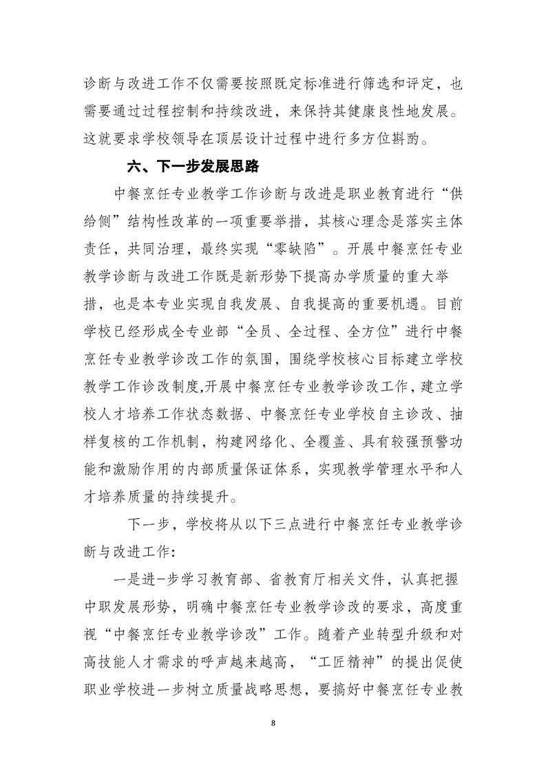 当前页面:中餐烹饪终期验收 >> 专业建设任务 >> 1.6完善质量评价体系 >> 1.6.1质量评价机制建设 >> 1.6.1.4专业教学诊断与改进