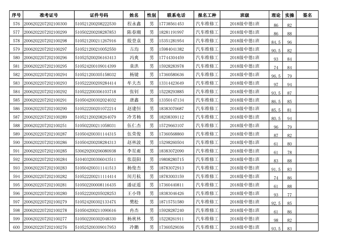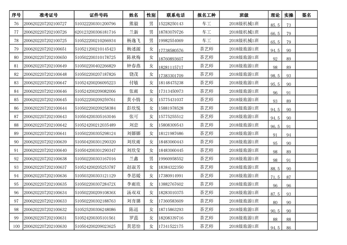 专业技能等级证书考取情况