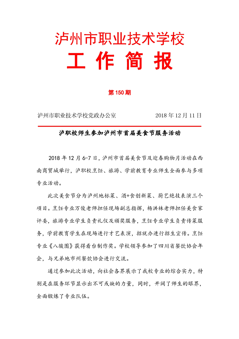 简报150 师生参加泸州市首届美食节服务活动