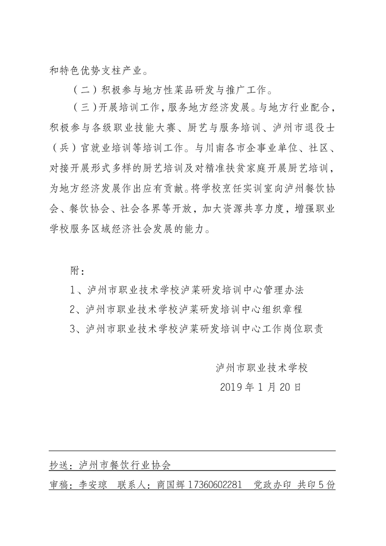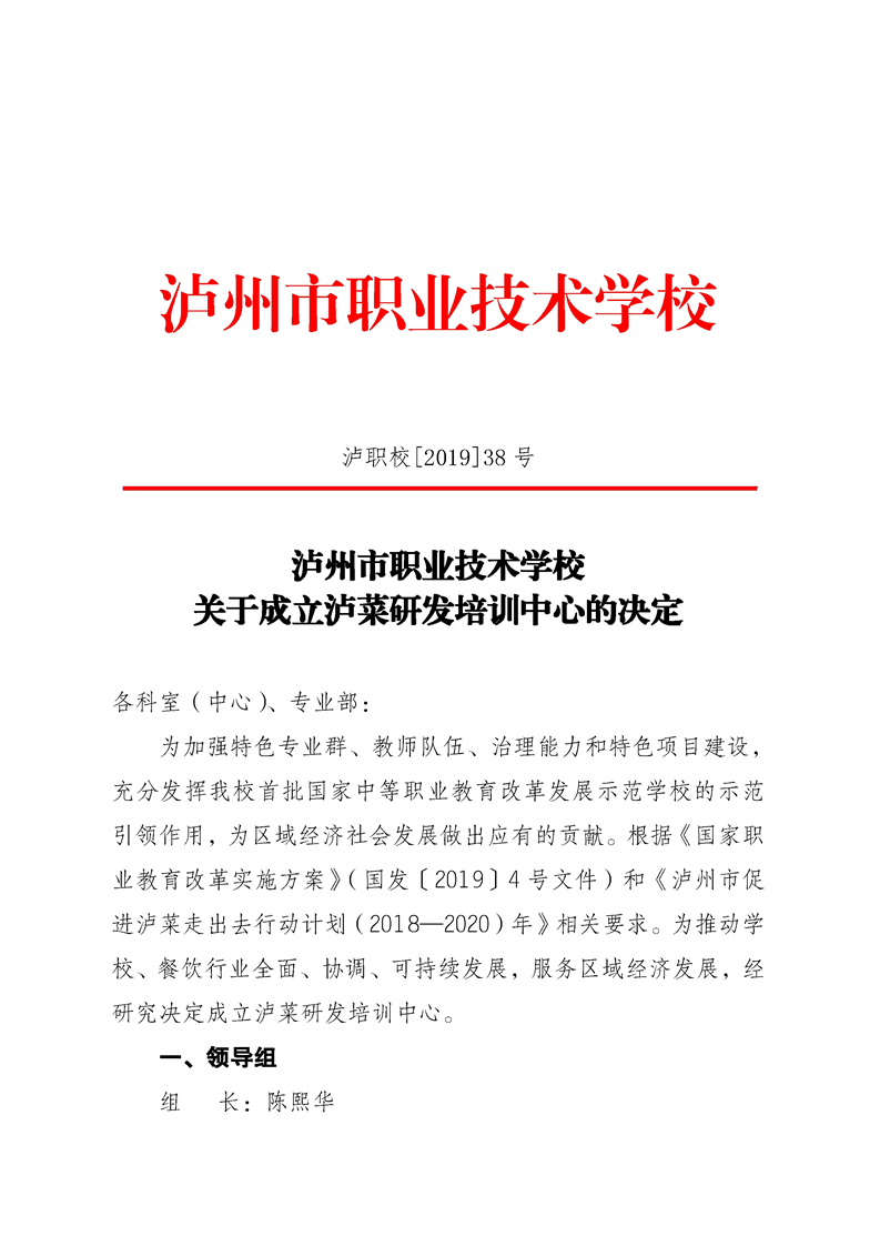 成立“泸菜研发培训中心”的文件