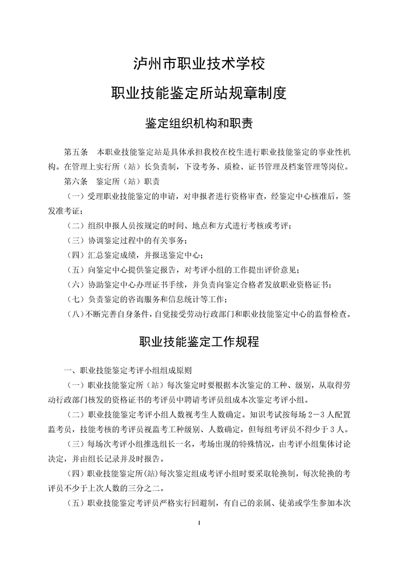职业技能鉴定所(站)规章制度