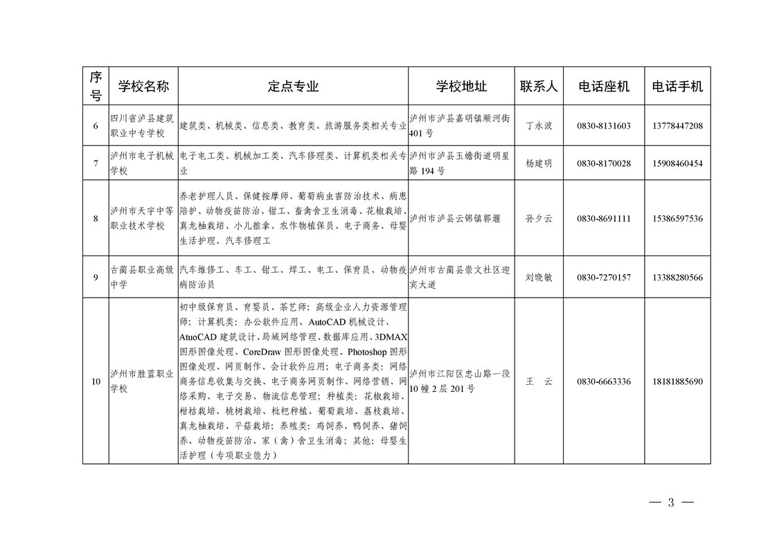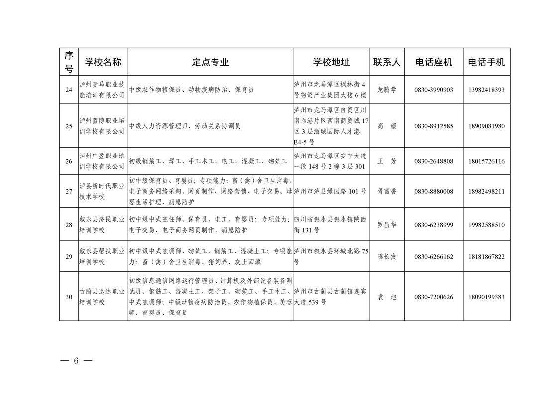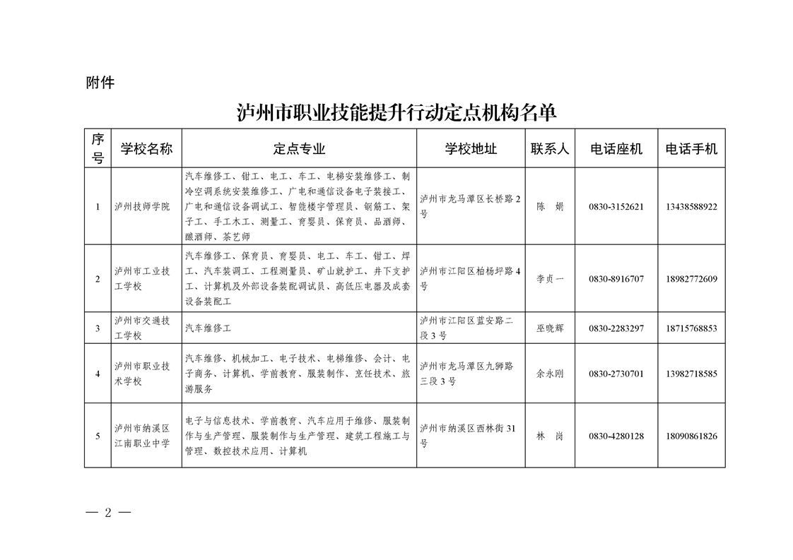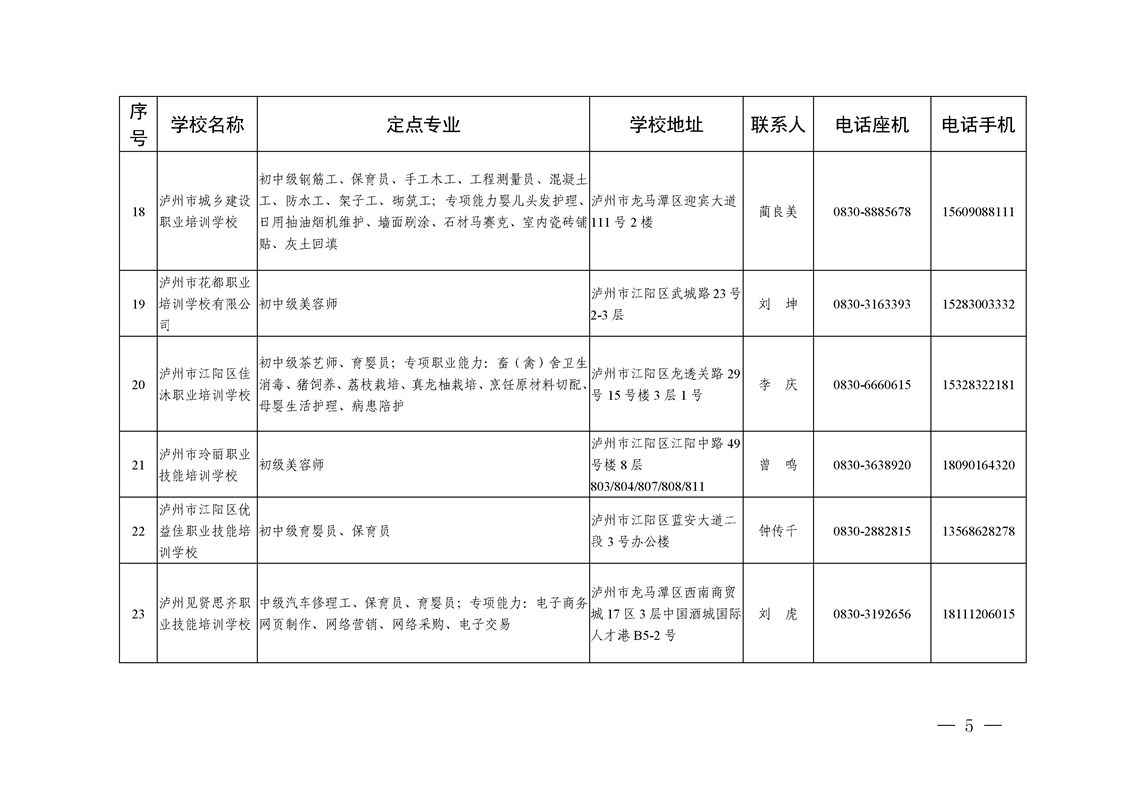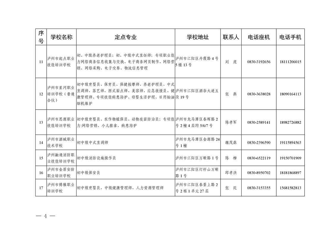 泸市人社函〔2020〕51号 关于公布泸州市职业技能提升行动定点培训机构的通知