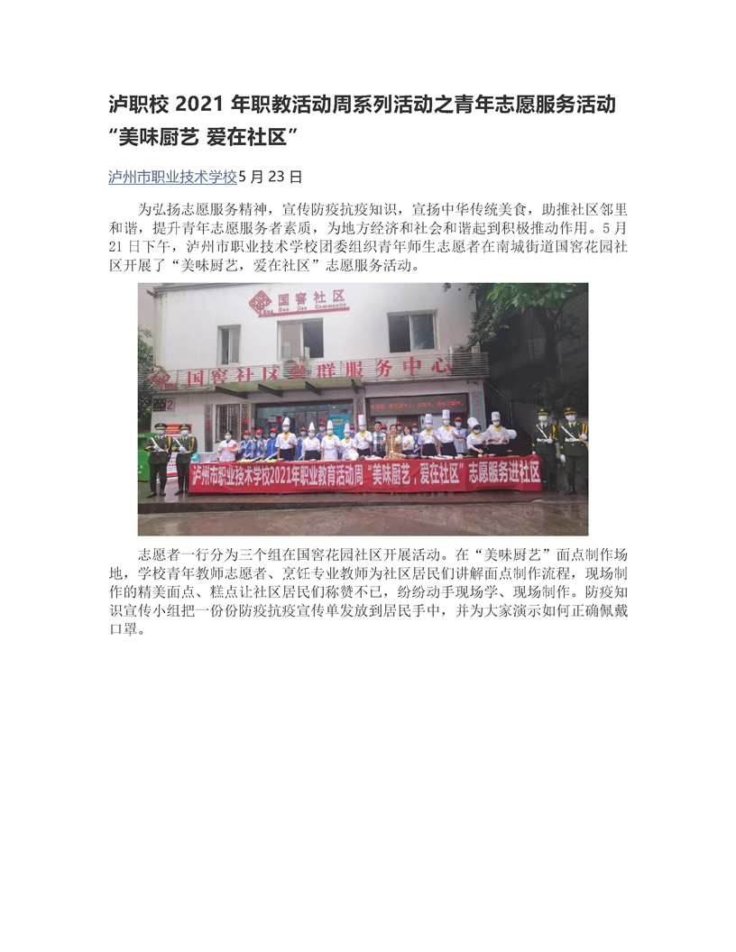 美味厨艺,爱在社区”青年志愿者服务活动