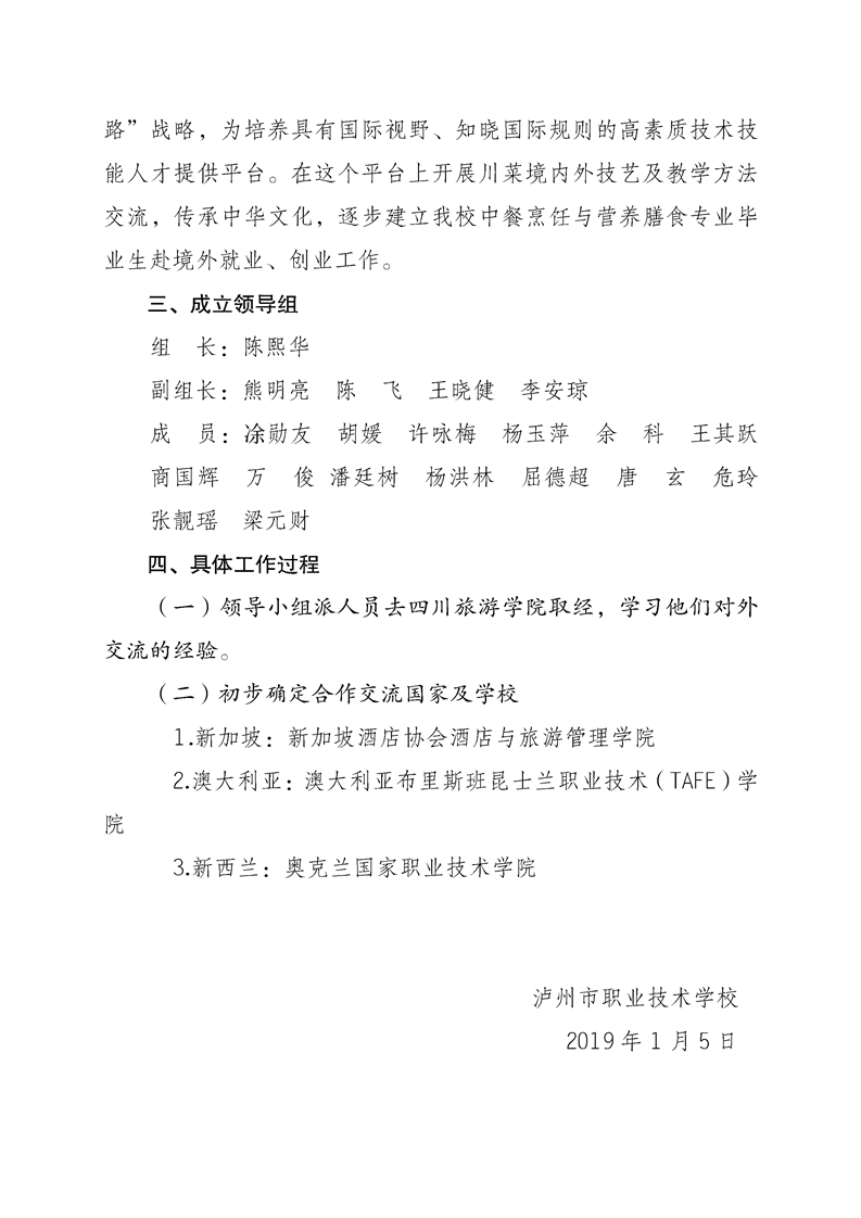 当前页面:中餐烹饪终期验收 >> 专业建设任务 >> 1.7加快推进国际化进程 >> 1.7.1国际交流合作 >> 1.7.1.1方案